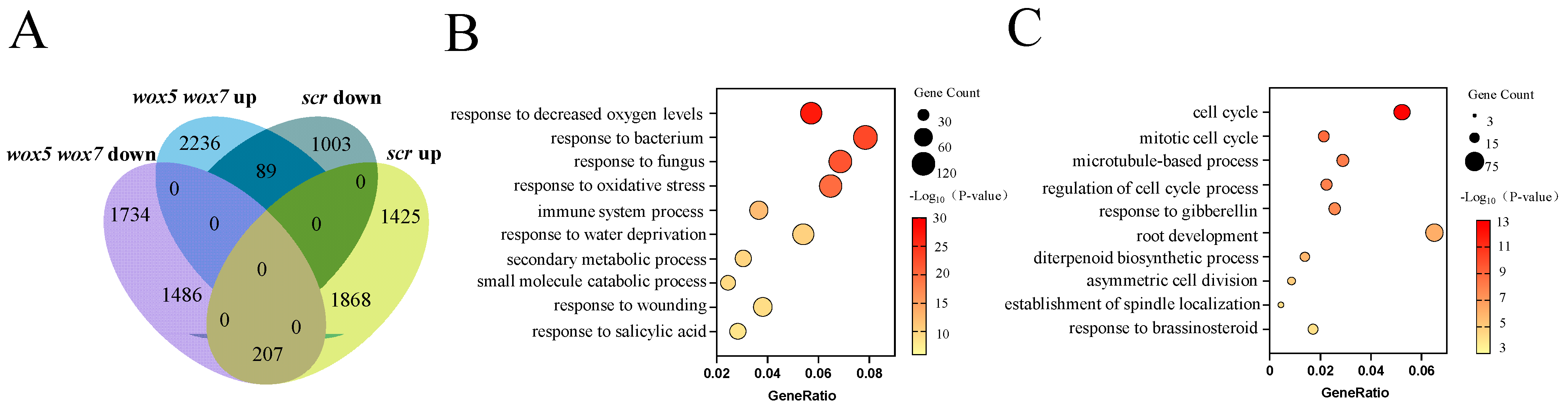 3.3. WOX5/7 and SCR Co-Regulate a Substantial Number of Cell Cycle Related Genes