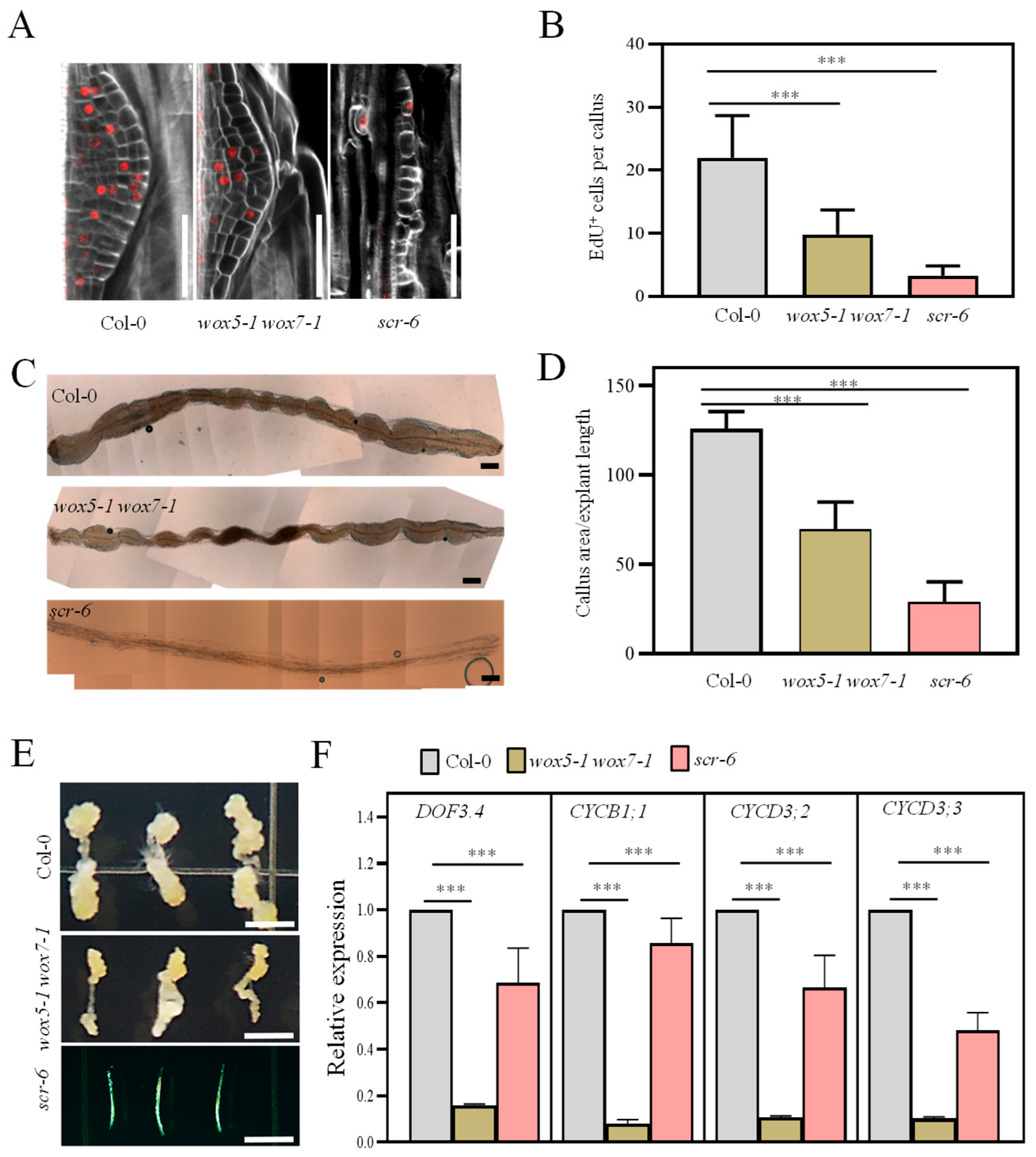 3.4. The WOX5/7-SCR Module Drives Callus Cell Proliferation