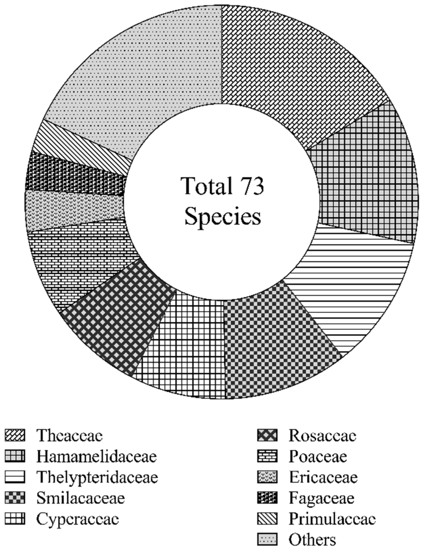 | Loropetalum chinense | 47.4 | - | 20.0 | 13.6 | 29.5 | 26.2 | 14.1 | 14.5 | 25.3 | 23.8 | - | - | 7.0 | |