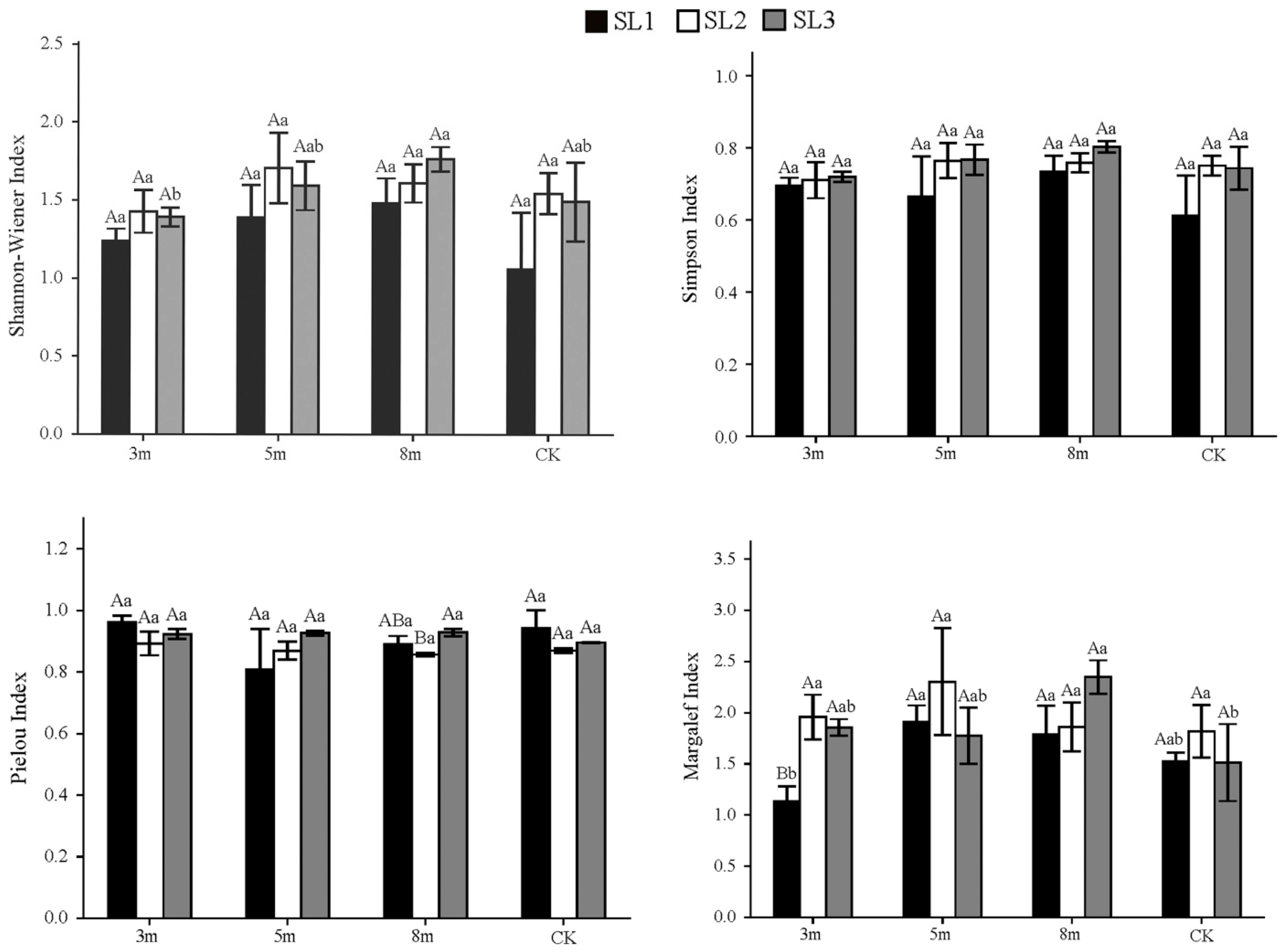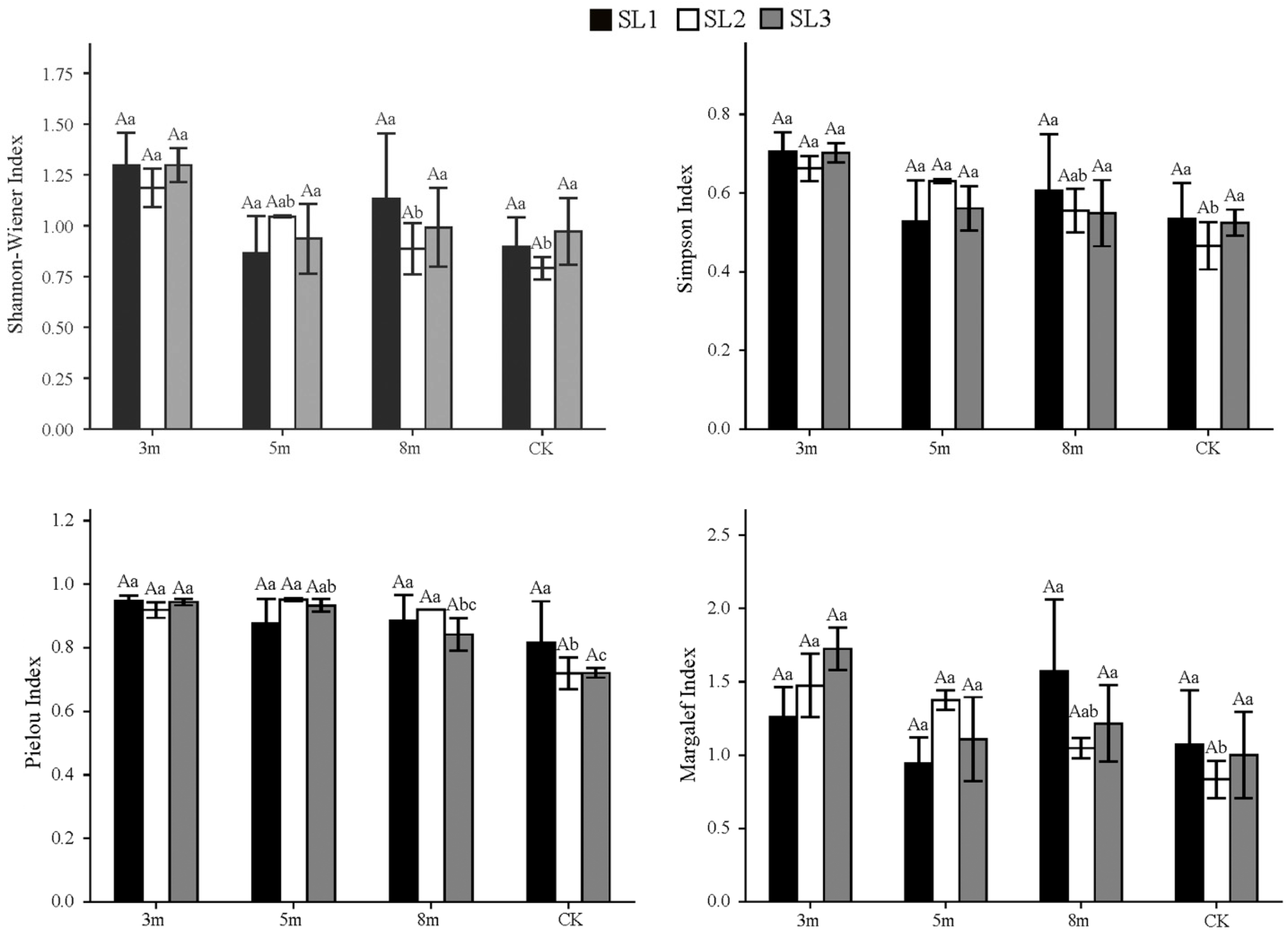 | CK | SL1 | 2558.33 ± 96.10 Ab | 1566.67 ± 230.19 Aa | 4558.33 ± 282.97 Aa | 9.31 ± 0.23 Aa | 0.70 ± 0.03 Ab |