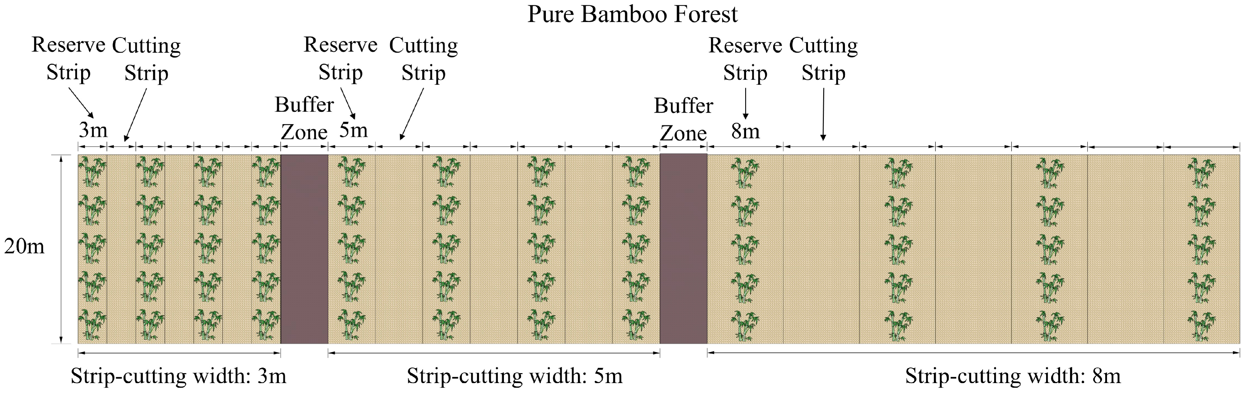- Li, R.; Yu, N.; Bi, H.M.; Zhou, M.J. Research Status of Clearcutting in Strips and Tending Technology of Bamboo Forests. J. Bamboo Res. 2021, 40, 84–88. [Google Scholar] [CrossRef]