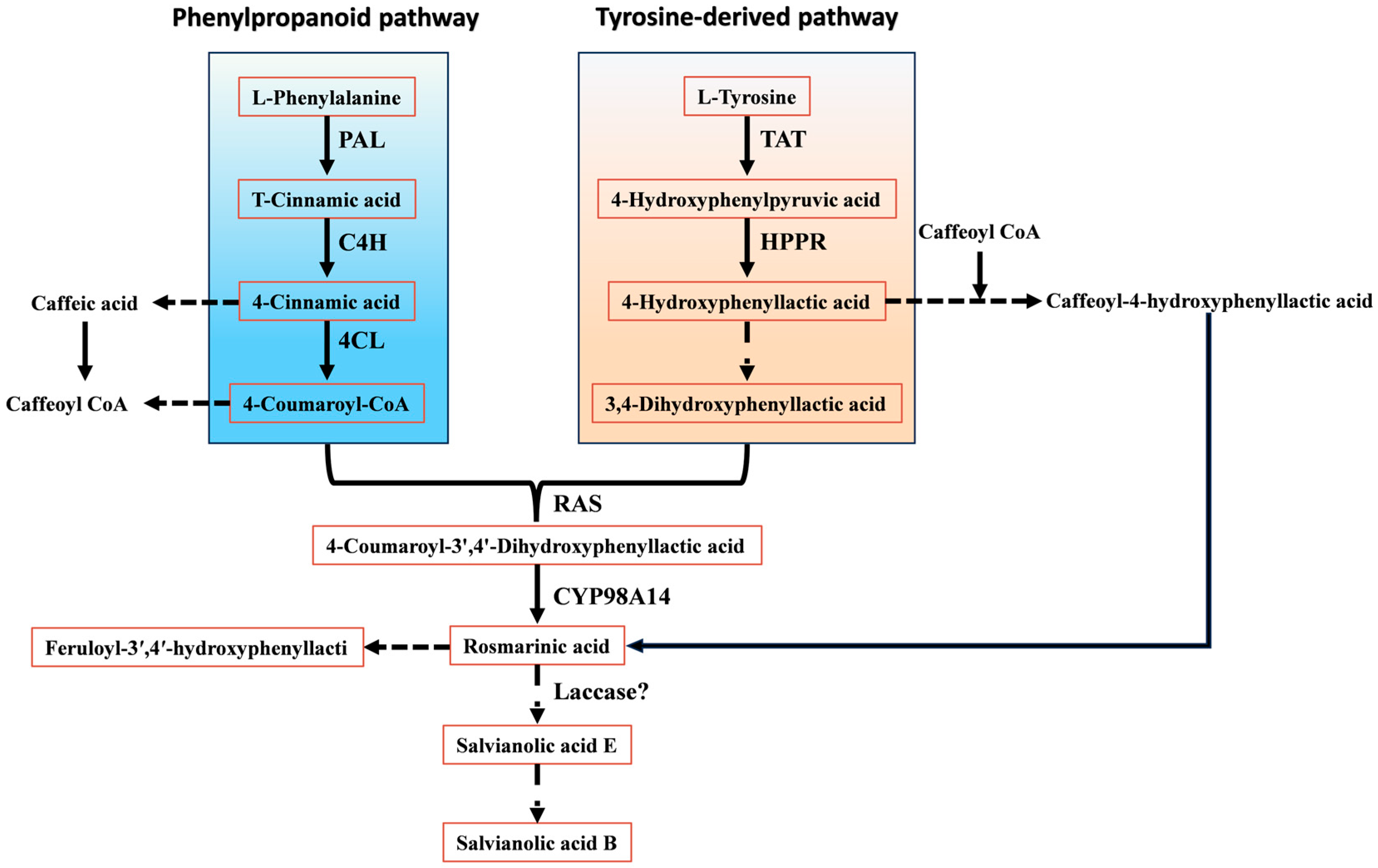 3.1. Salvianolic Acid Biosynthetic Pathways