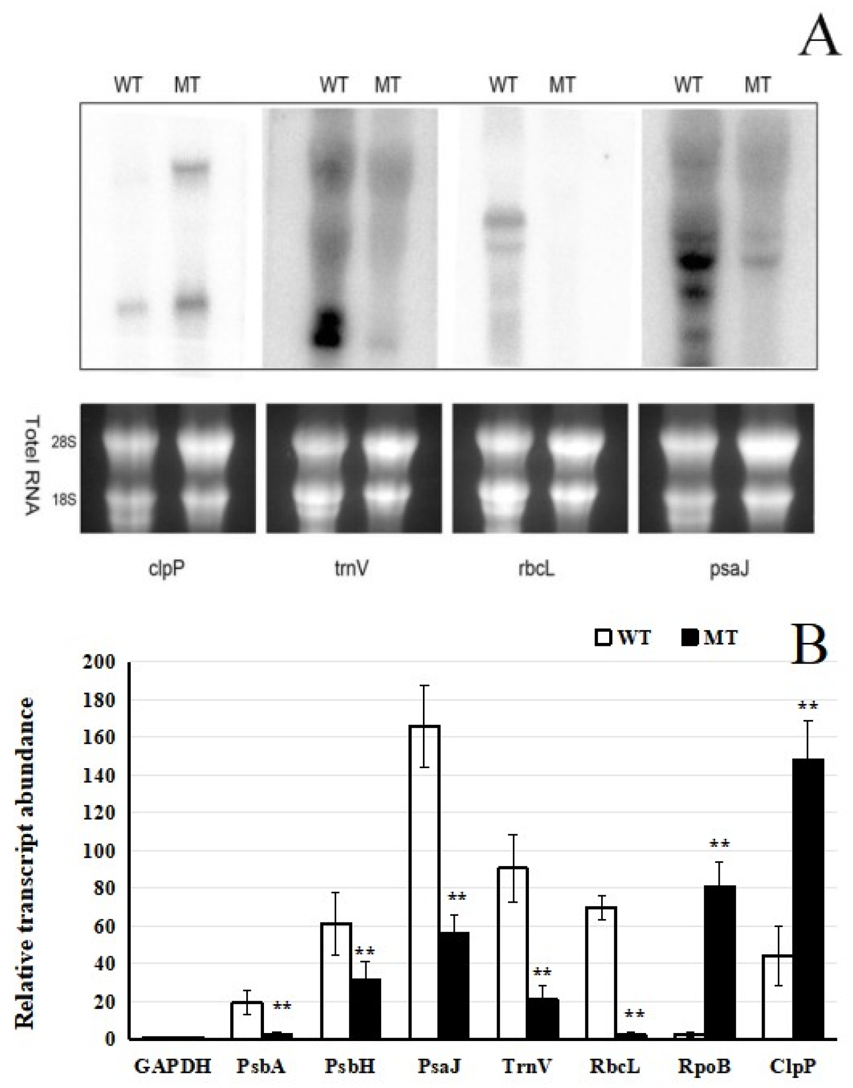 3.1. Effects of Chlorophyll-Deficient Mutations on Plastid Transcription
