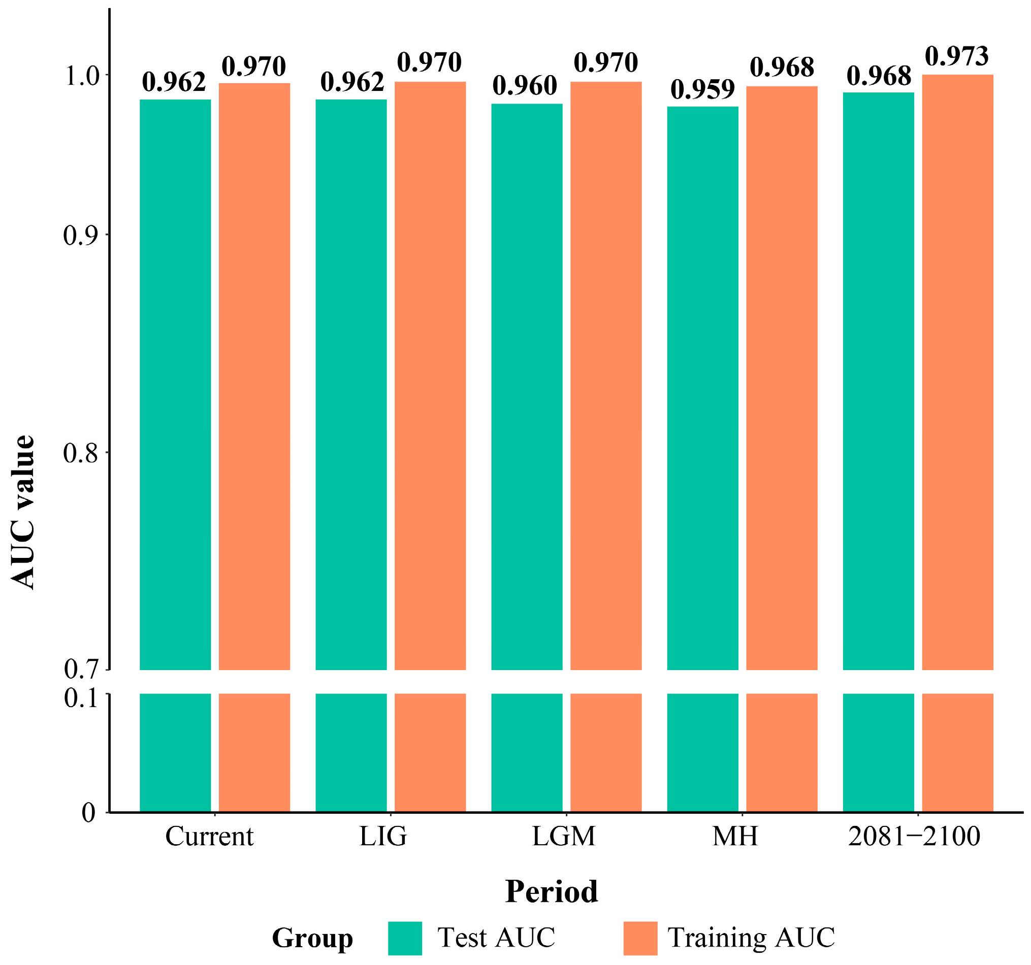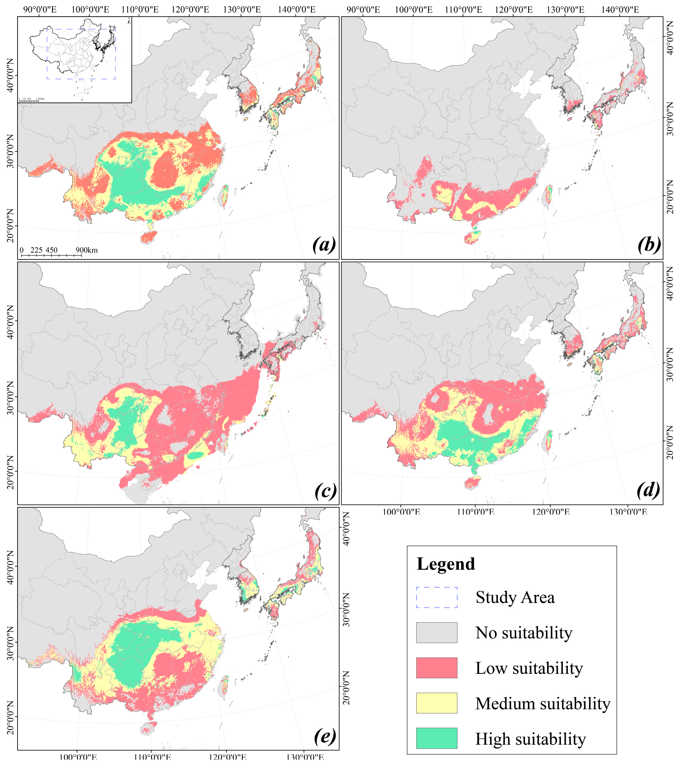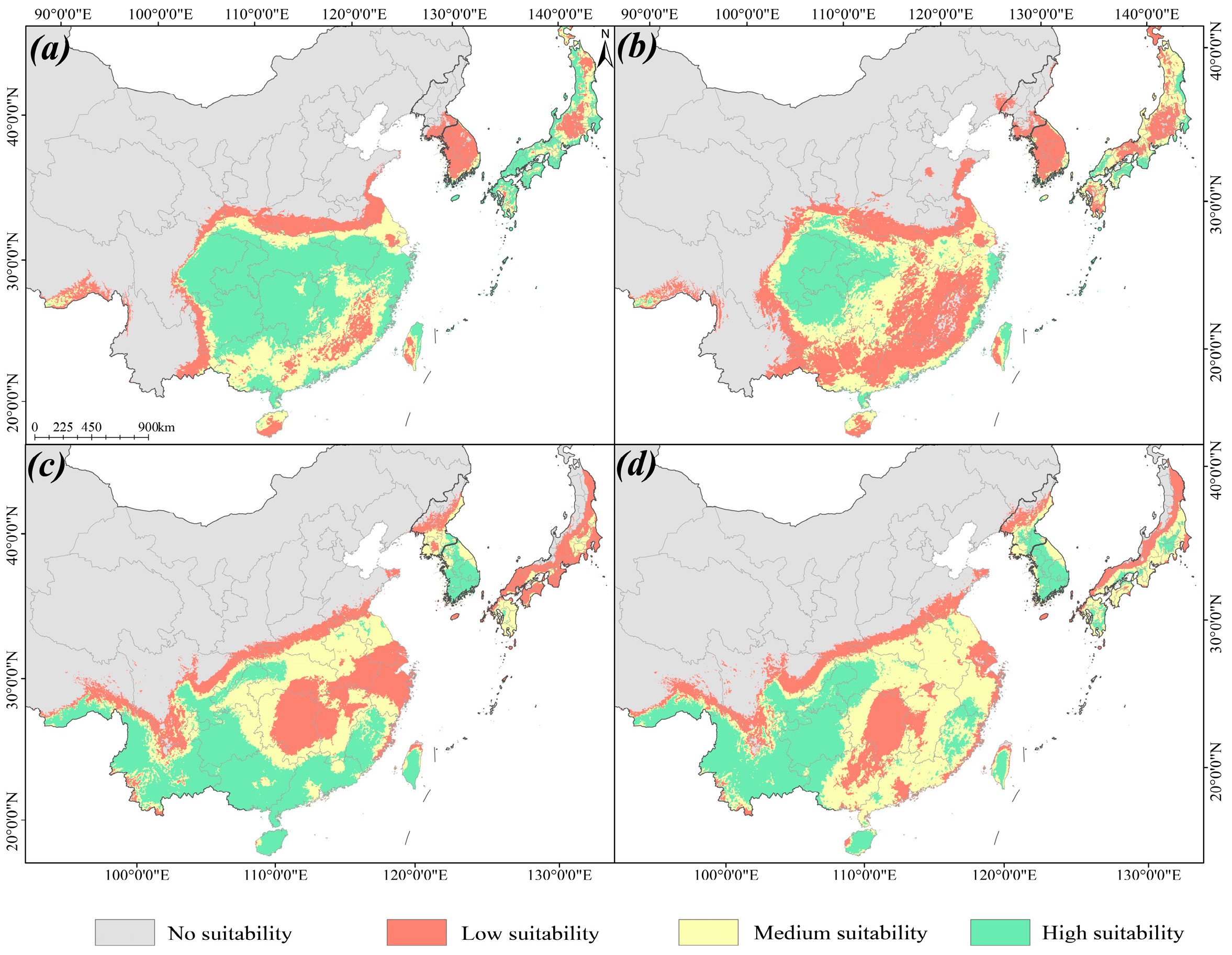 | Period | Suitable Distribution Area (×104 km2) | |||