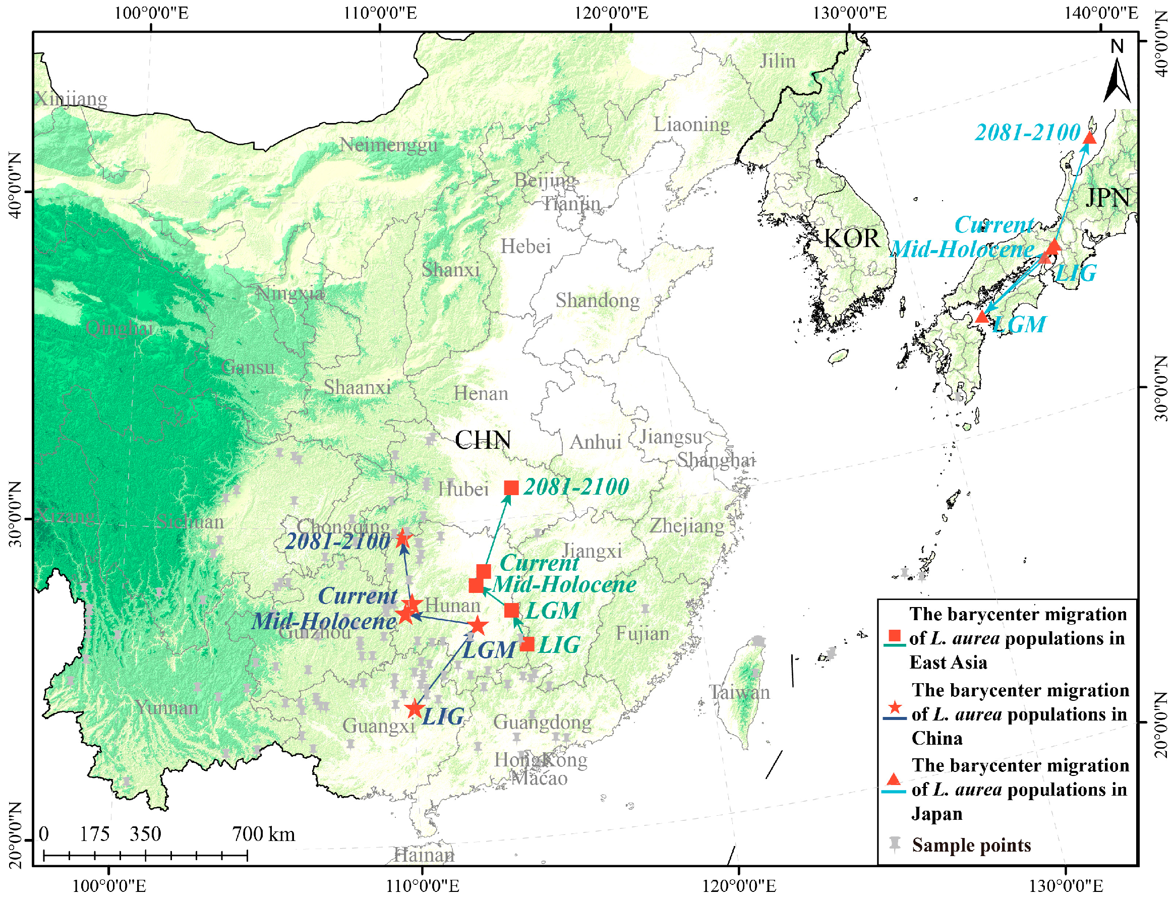3.3. The “Filter Corridor” Hypothesis for the LGM East China Sea Land Bridge and Genetic Connectivity