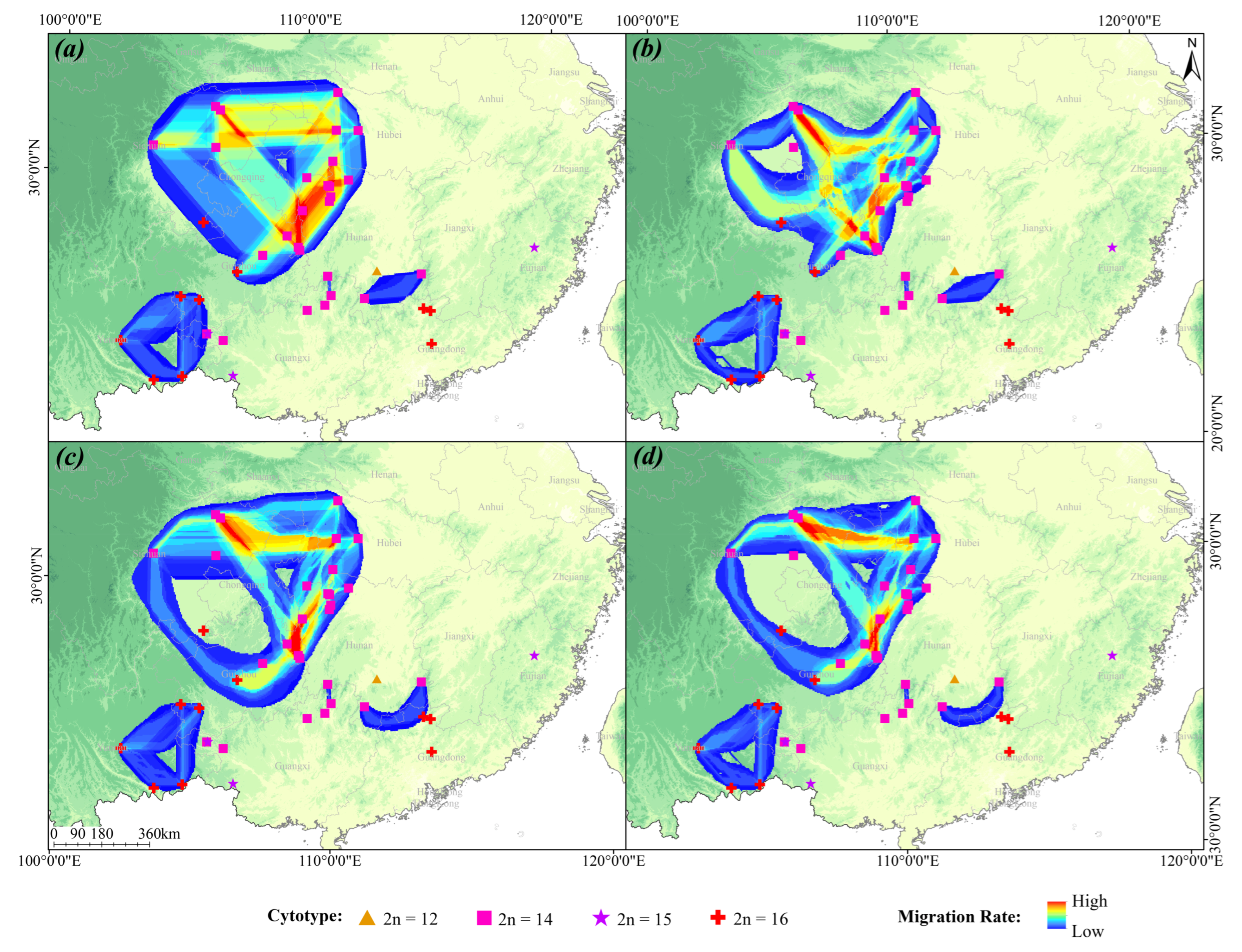 - Qiu, Y.-X.; Fu, C.-X.; Comes, H.P. Plant Molecular Phylogeography in China and Adjacent Regions: Tracing the Genetic Imprints of Quaternary Climate and Environmental Change in the World’s Most Diverse Temperate Flora. Mol. Phylogenet. Evol. 2011, 59, 225–244. [Google Scholar] [CrossRef]