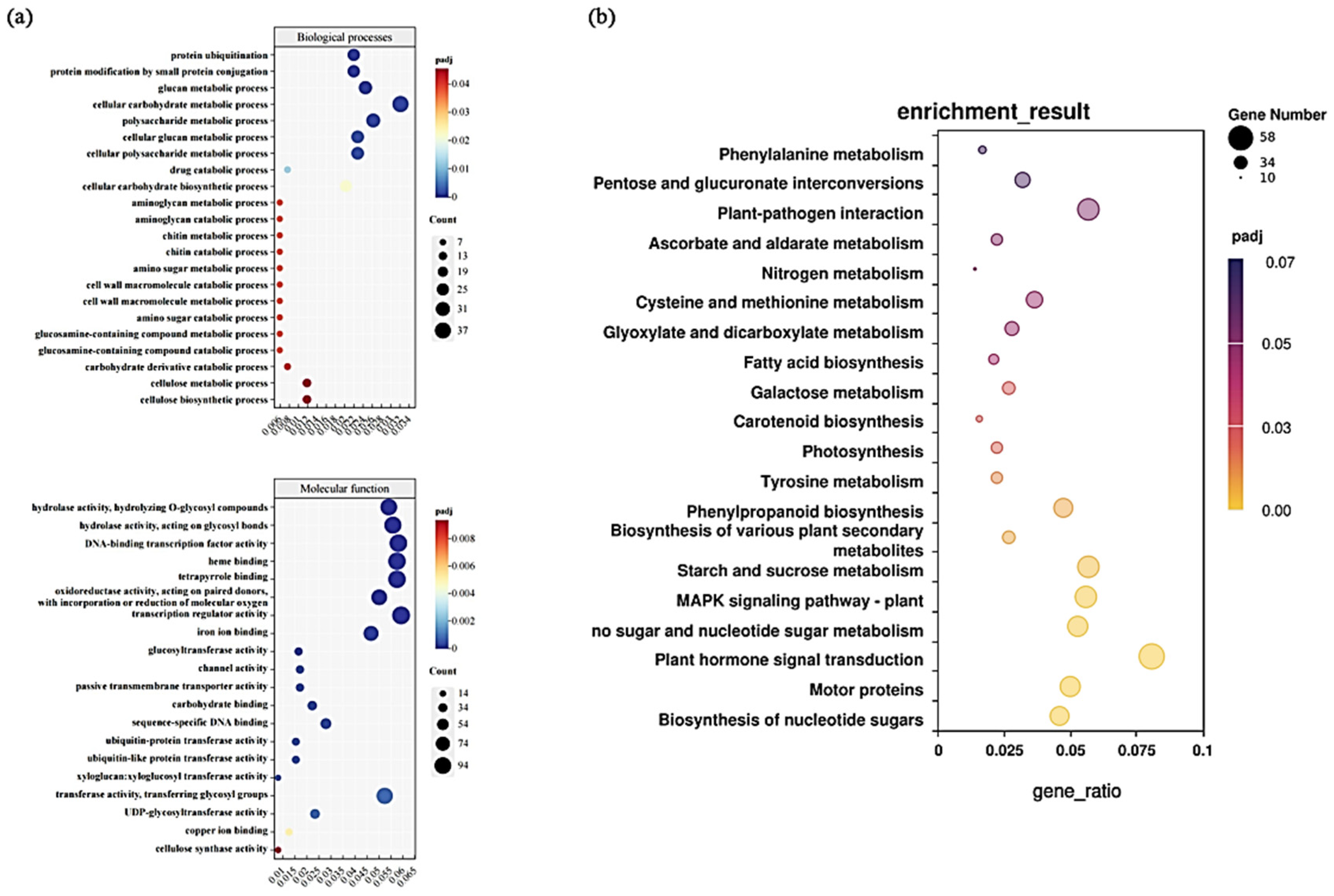 2.6. Function Annotation and Enrichment Analysis of DEGs