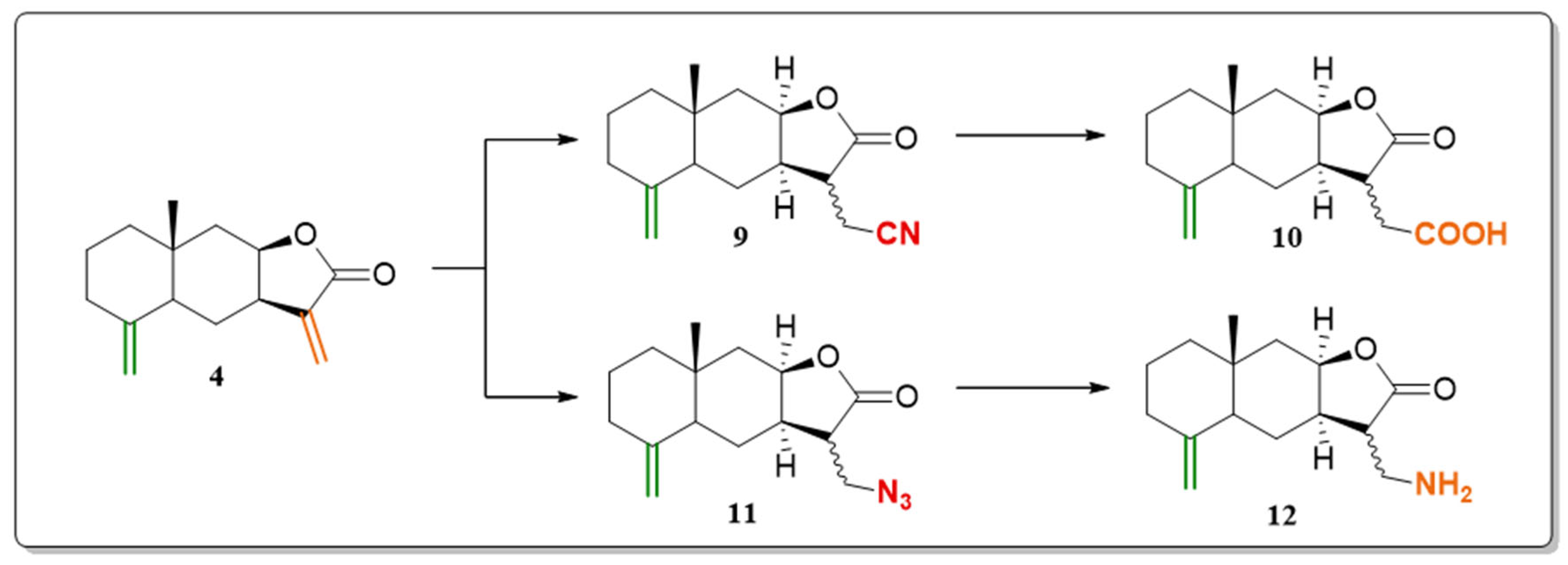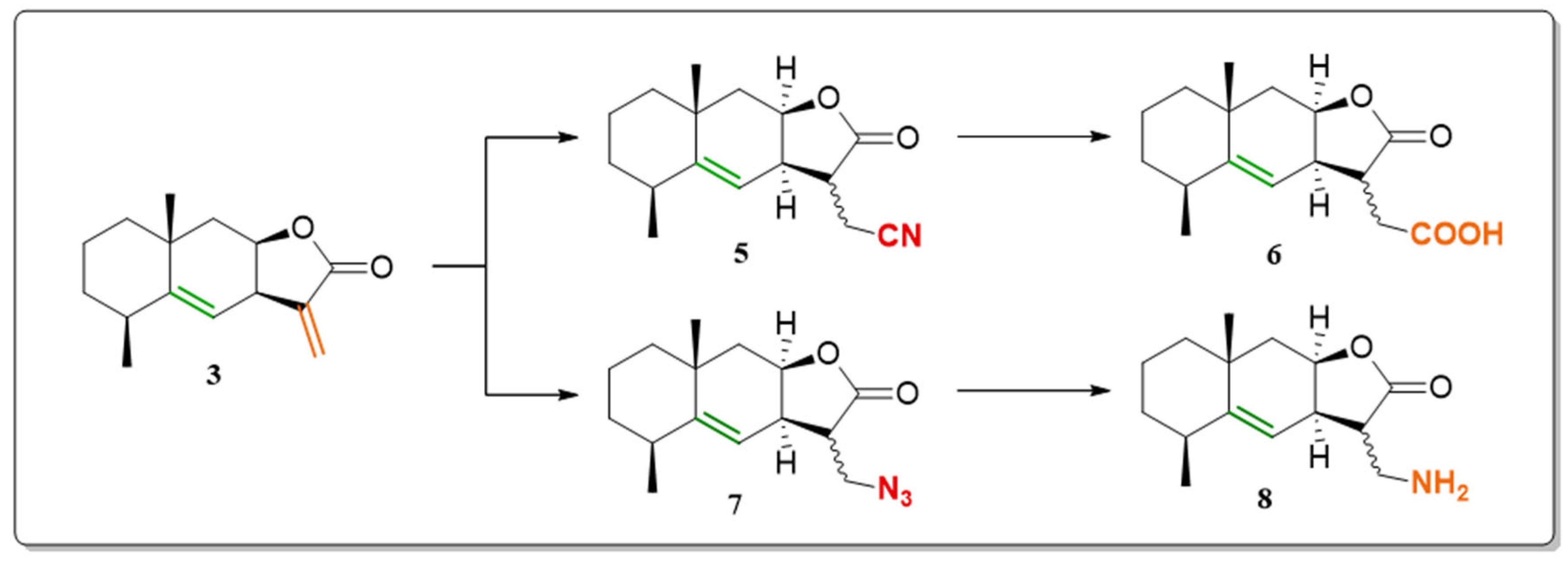 2.2. Synthesis of Alantolactone and Isoalantolactone Derivatives