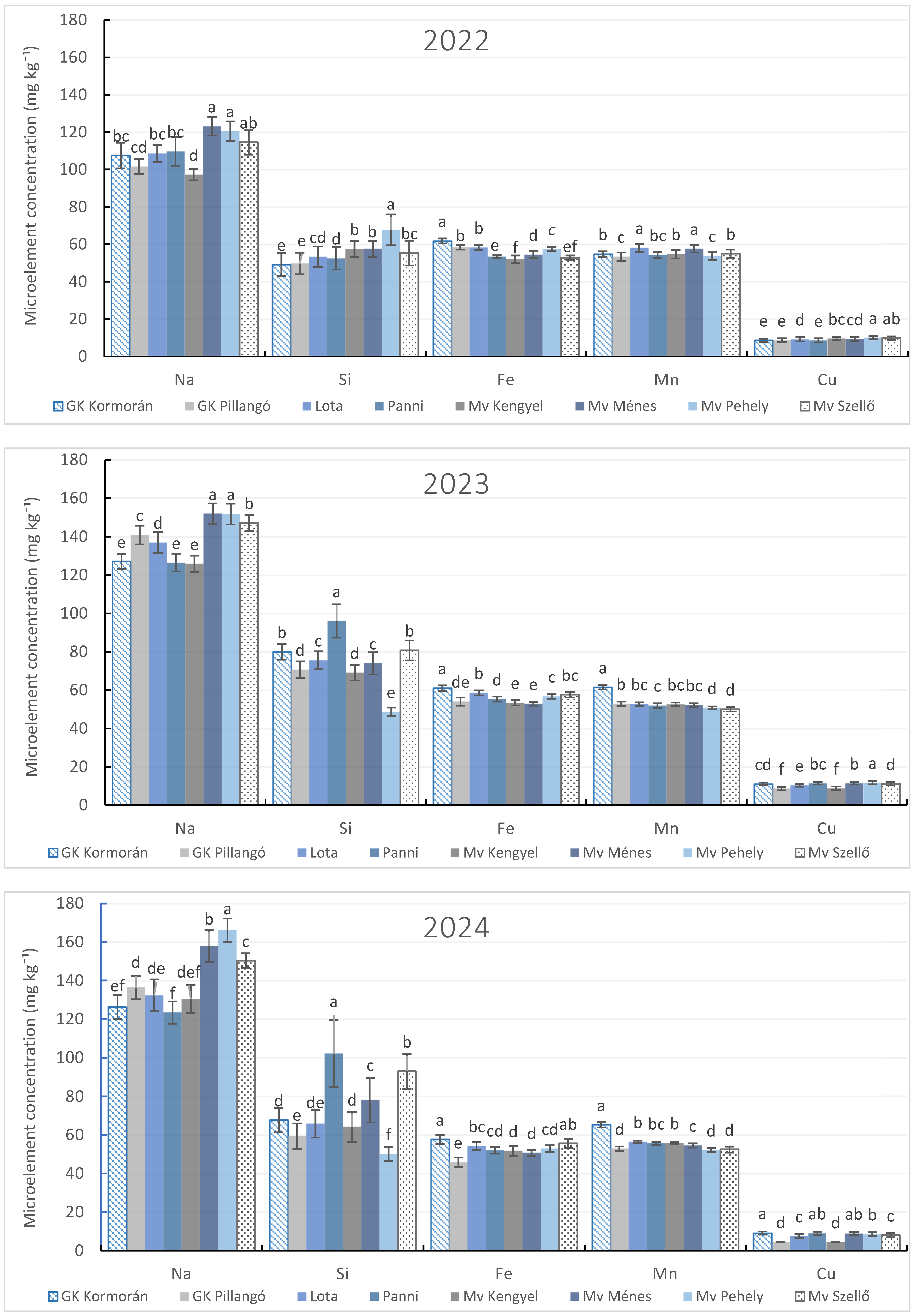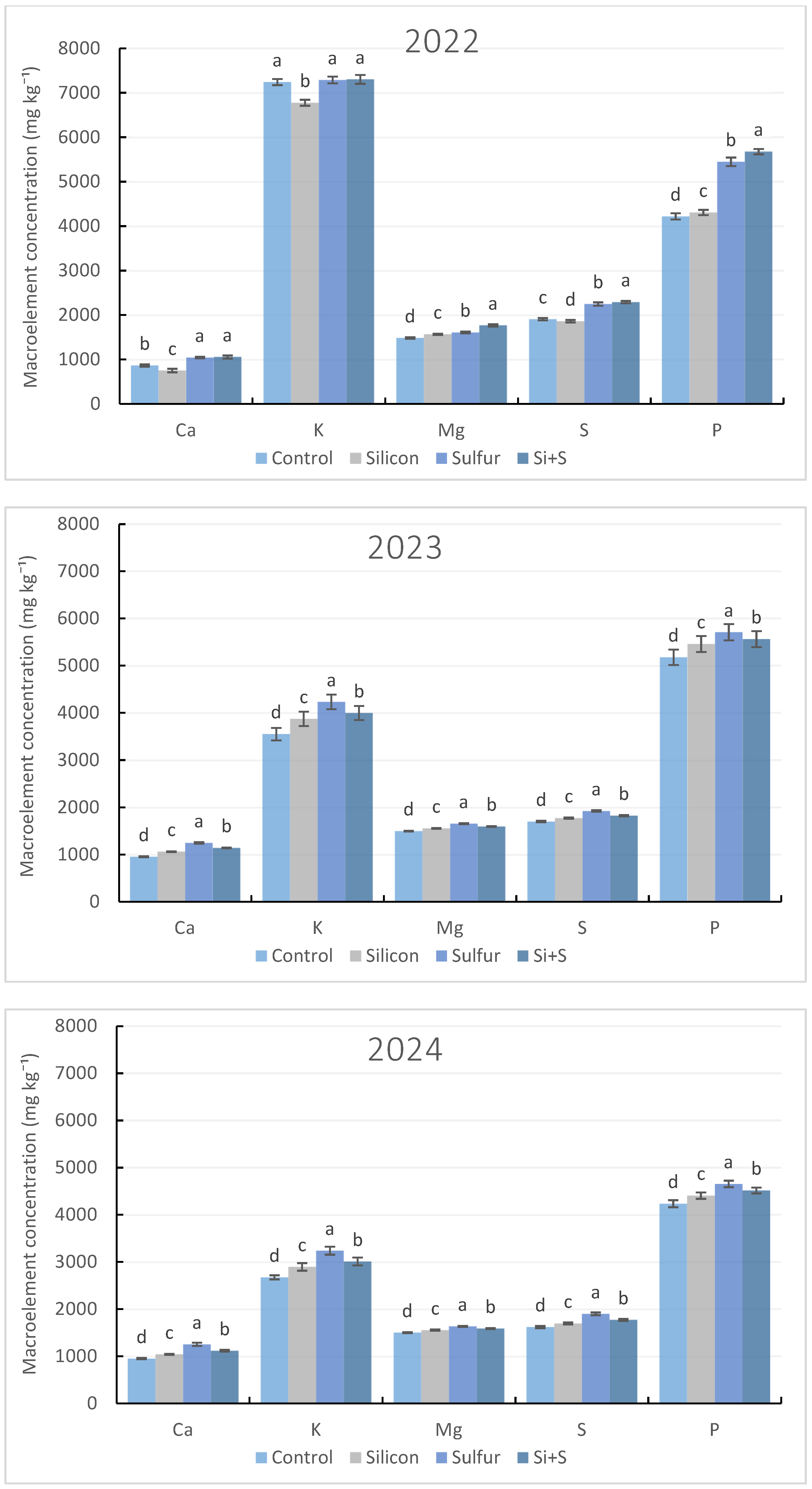 | Year | Macroelements (mg kg−1) | Microelements (mg kg−1) | ||||||||