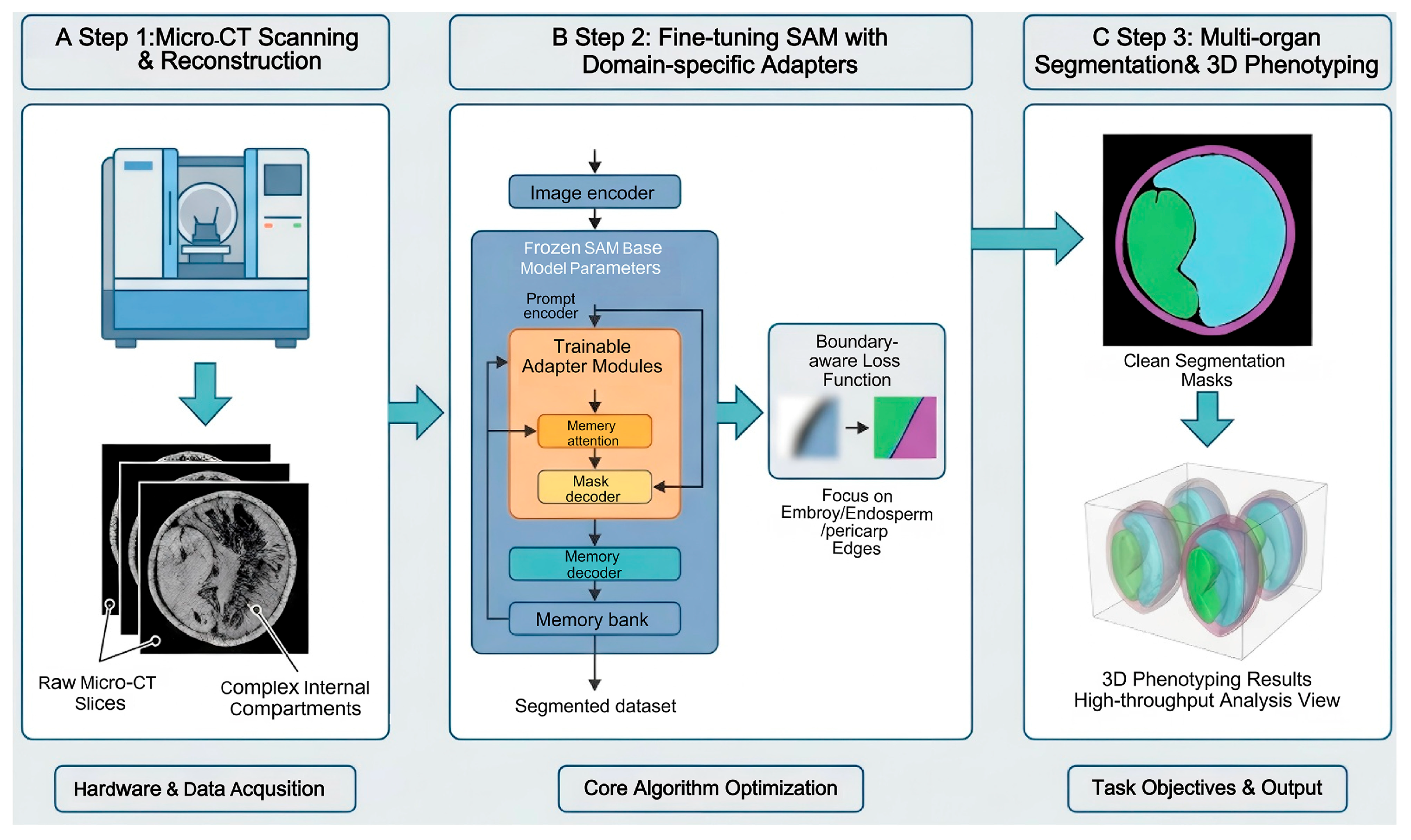 - Miao, Y.; Wang, R.; Jing, Z.; Wang, K.; Tan, M.; Li, F.; Zhang, W.; Han, J.; Han, Y. CT image segmentation of foxtail millet seeds based on semantic segmentation model VGG16-UNet. Plant Methods 2024, 20, 169. [Google Scholar] [CrossRef] [PubMed]