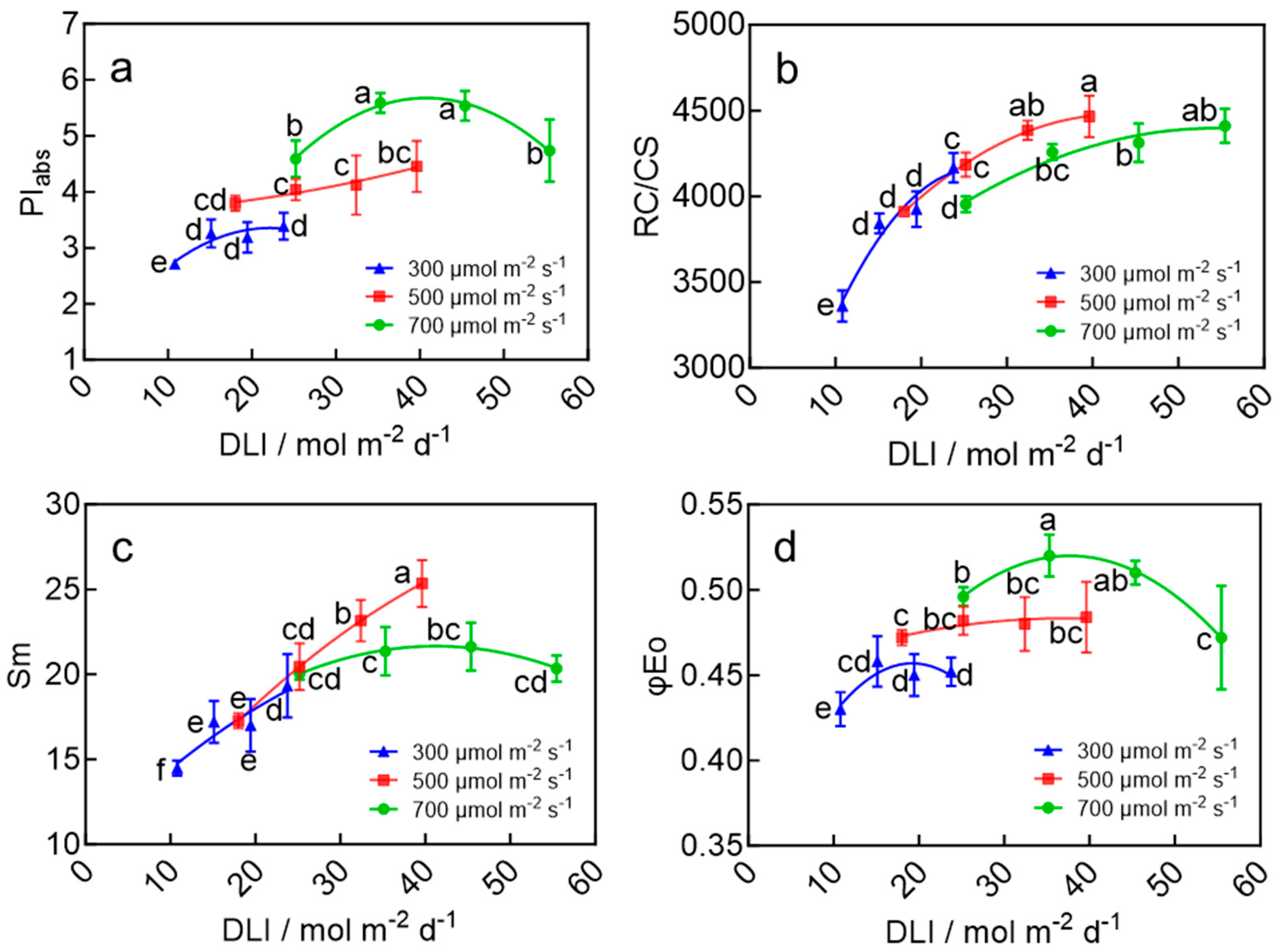3.1. Effect of DLI on Growth and Photosystem Performance of Wheat Seedlings