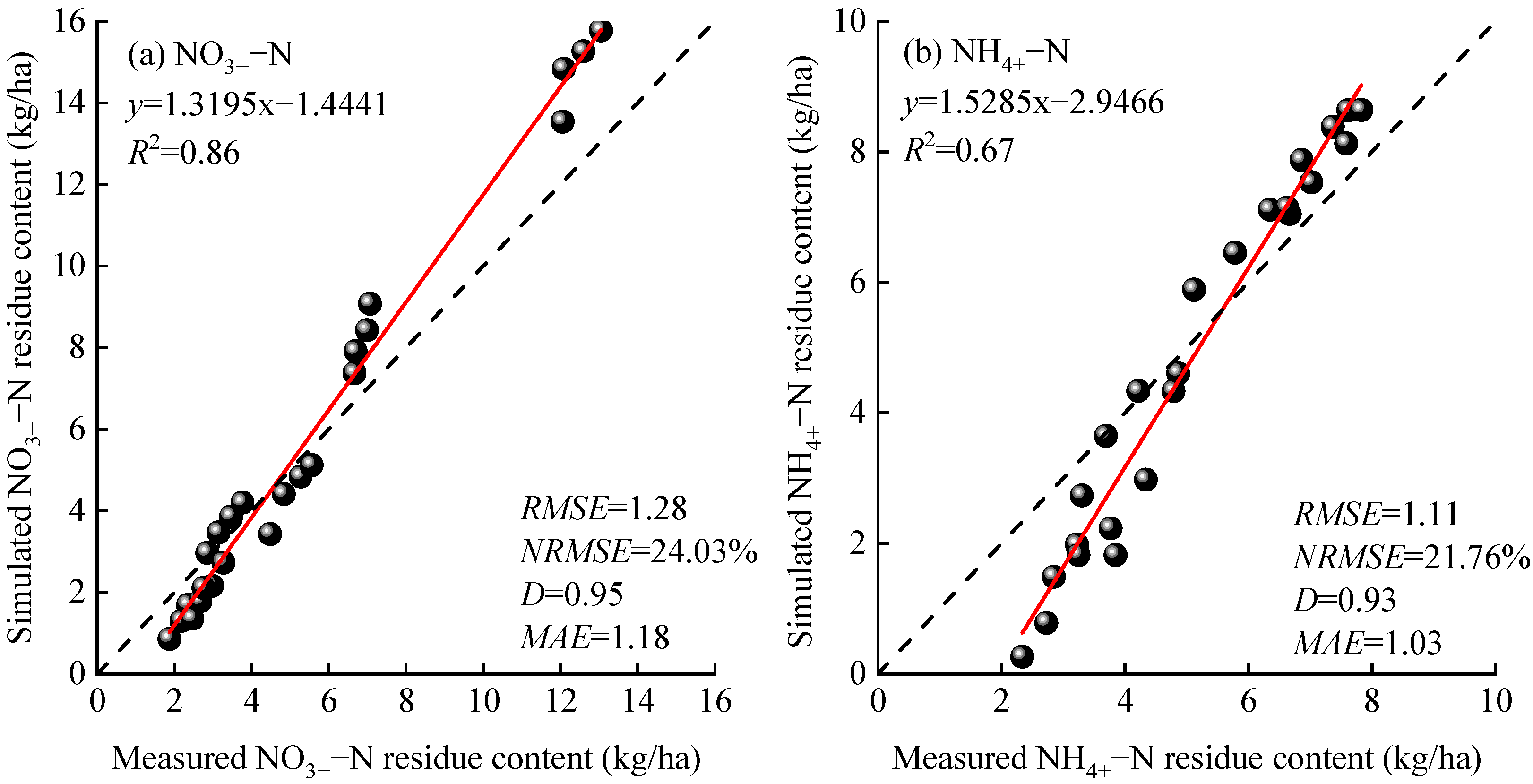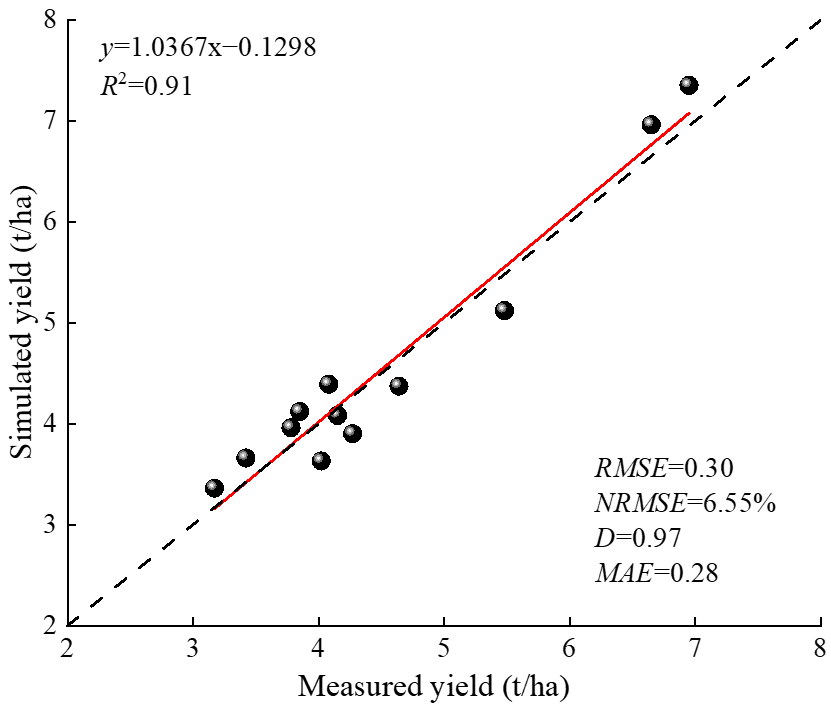 - The R2 and NRMSE for yield verification of the APSIM–Lucerne model were 0.91 and 6.55%, respectively, while the R2 and NRMSE for NO3−–N and NH4+–N residue verification were 0.67, 0.86, 21.76%, and 24.03%, respectively.
