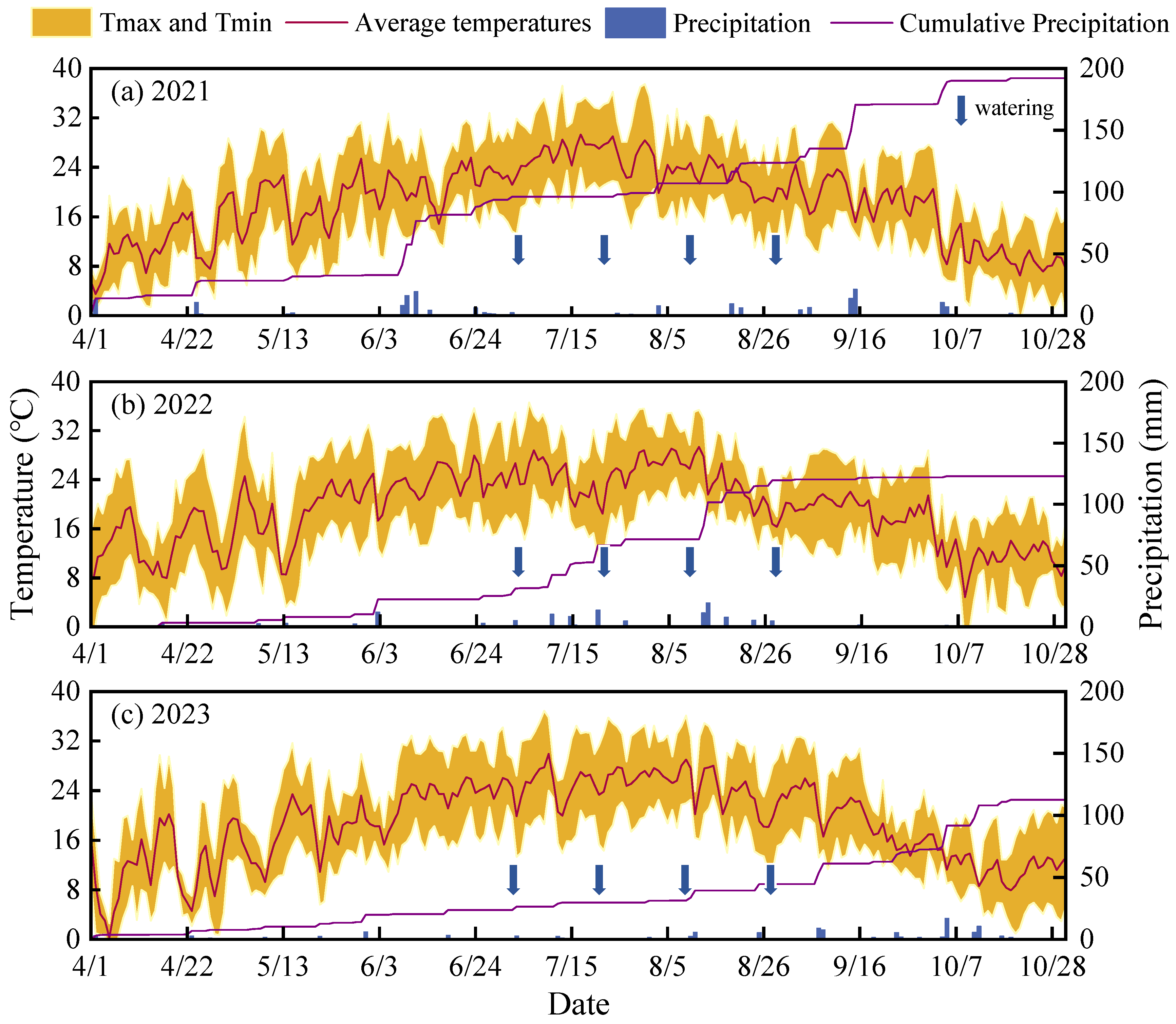- Wang, Z.G.; Wang, J.; Liu, Q. Simulation of response of spring wheat yield and its components to sowing date and average daily temperature in dryland under different precipitation years. J. Triticeae Crops 2024, 44, 1474–1481. (In Chinese) [Google Scholar]