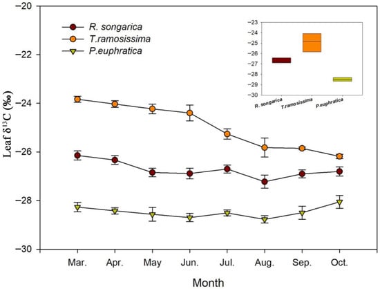 2.3. Seasonal Patterns of Leaf δ13C and Inferred Water-Use Efficiency