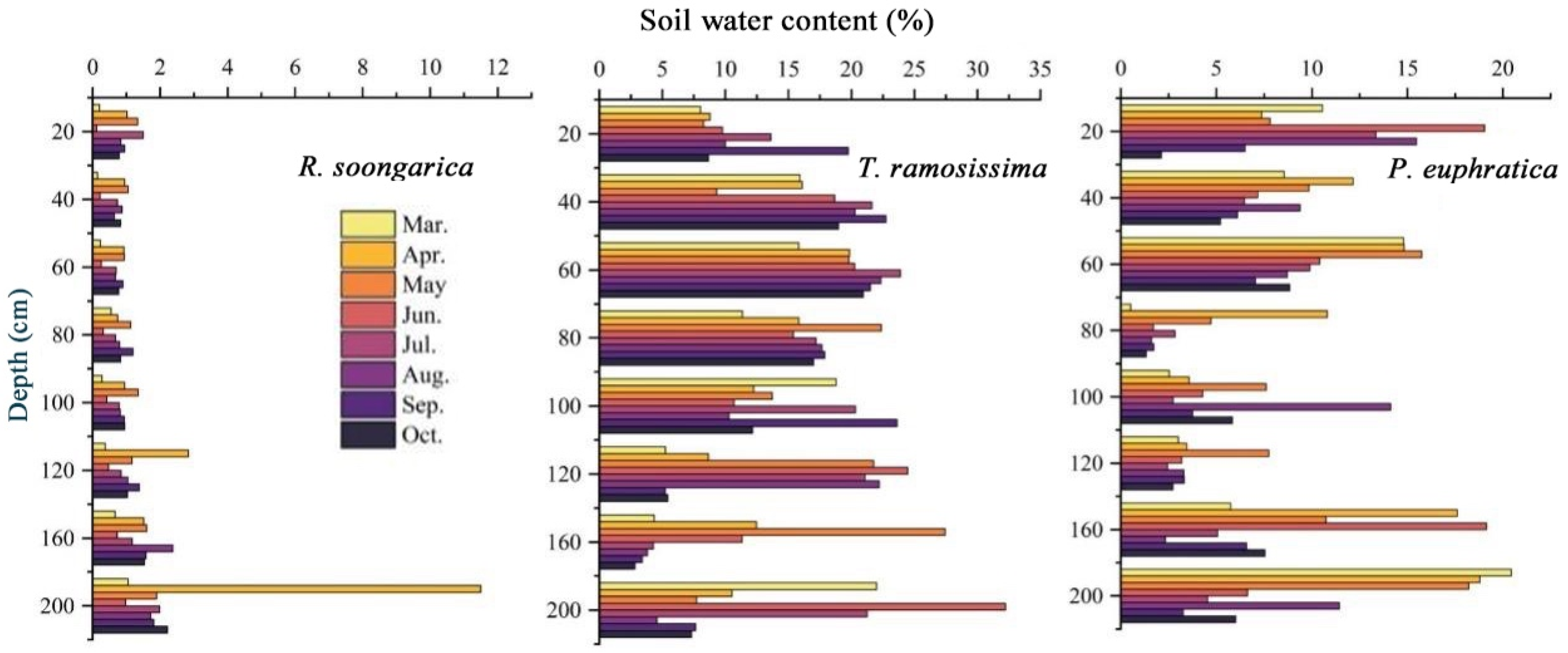 - Xu, S.; Ji, X.; Jin, B.; Zhang, J. Root distribution of three dominant desert shrubs and their water uptake dynamics. J. Plant Ecol. 2017, 10, 780–790. [Google Scholar] [CrossRef]