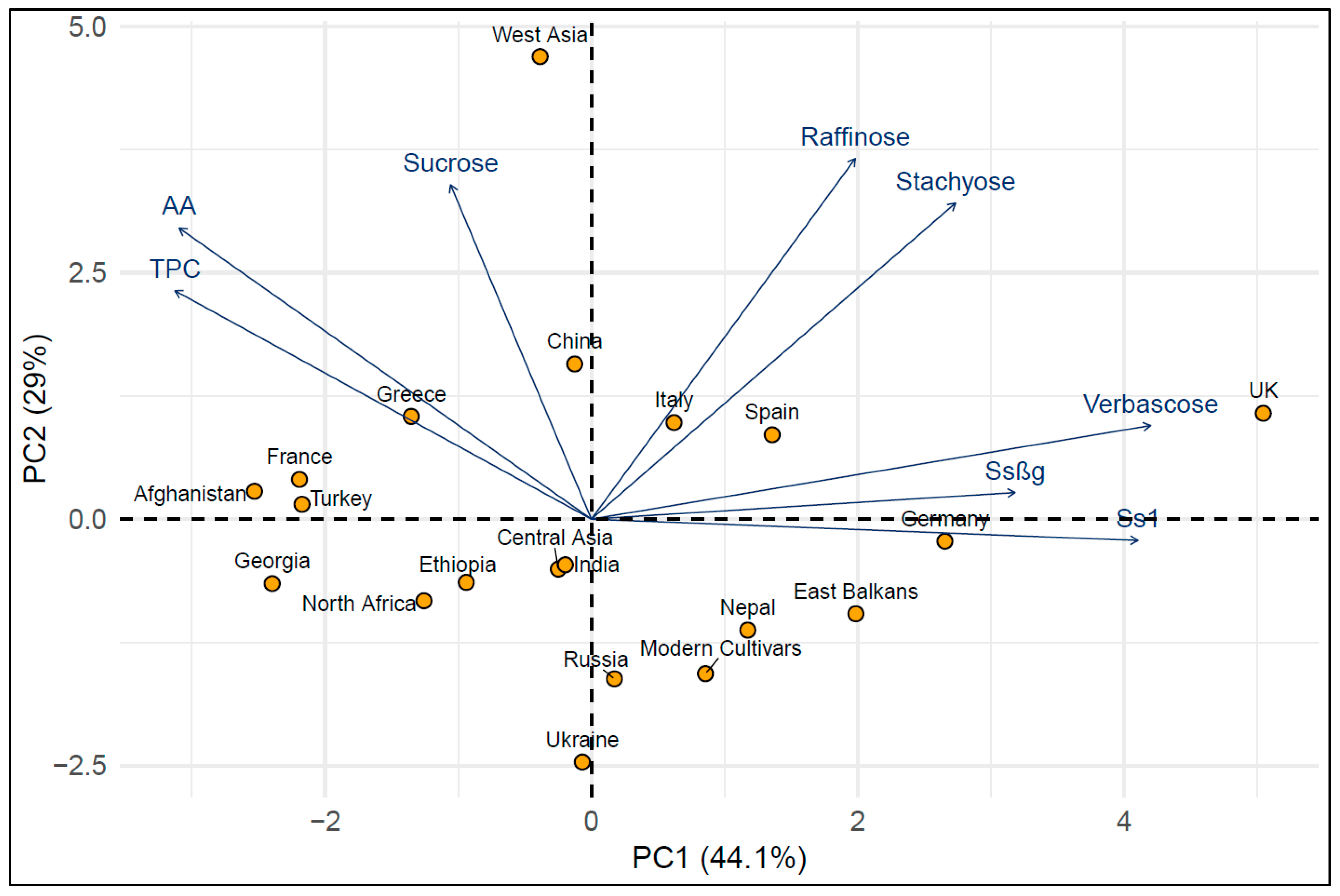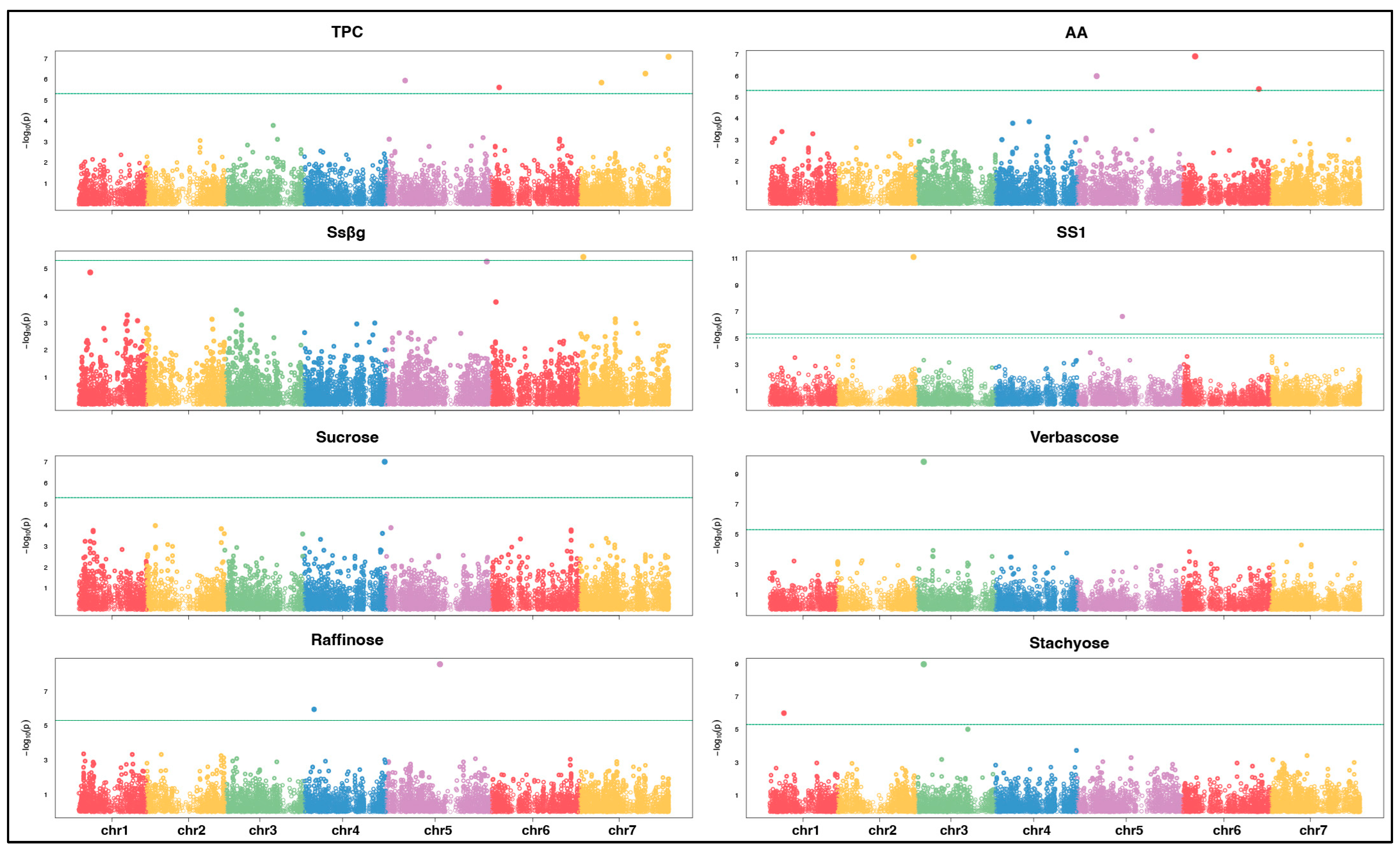 | TPCs | AA | Ssβg | Ss1 | Sucrose | Verbascose | Raffinose | |