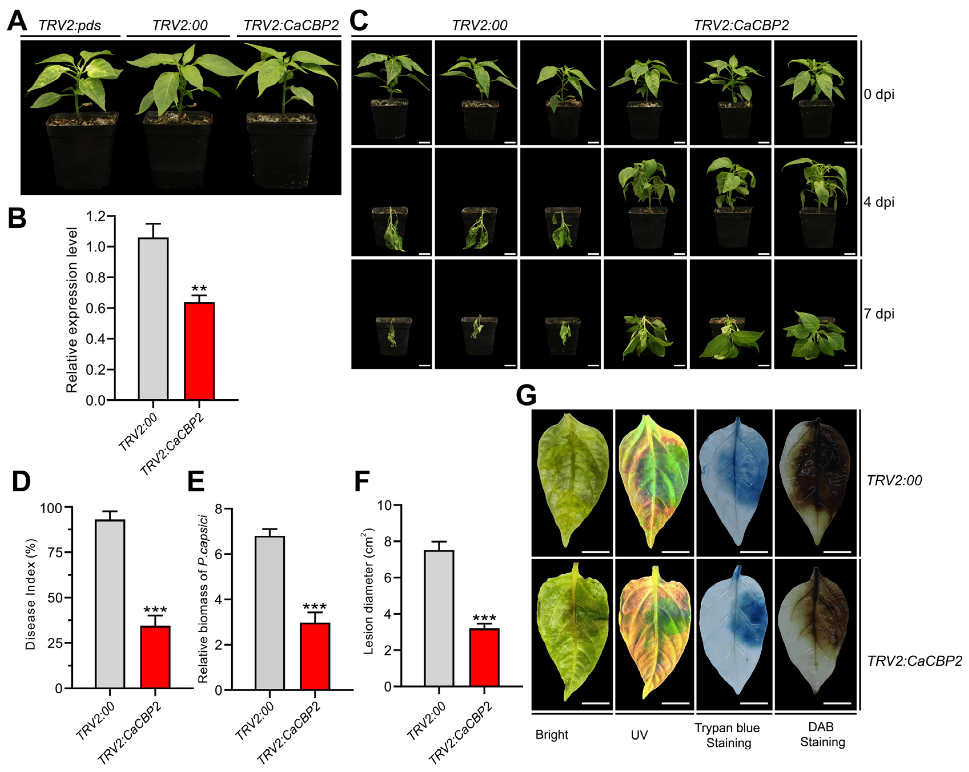 2.2. Silencing of CaCBP2 Enhances Pepper Resistance to P. capsici