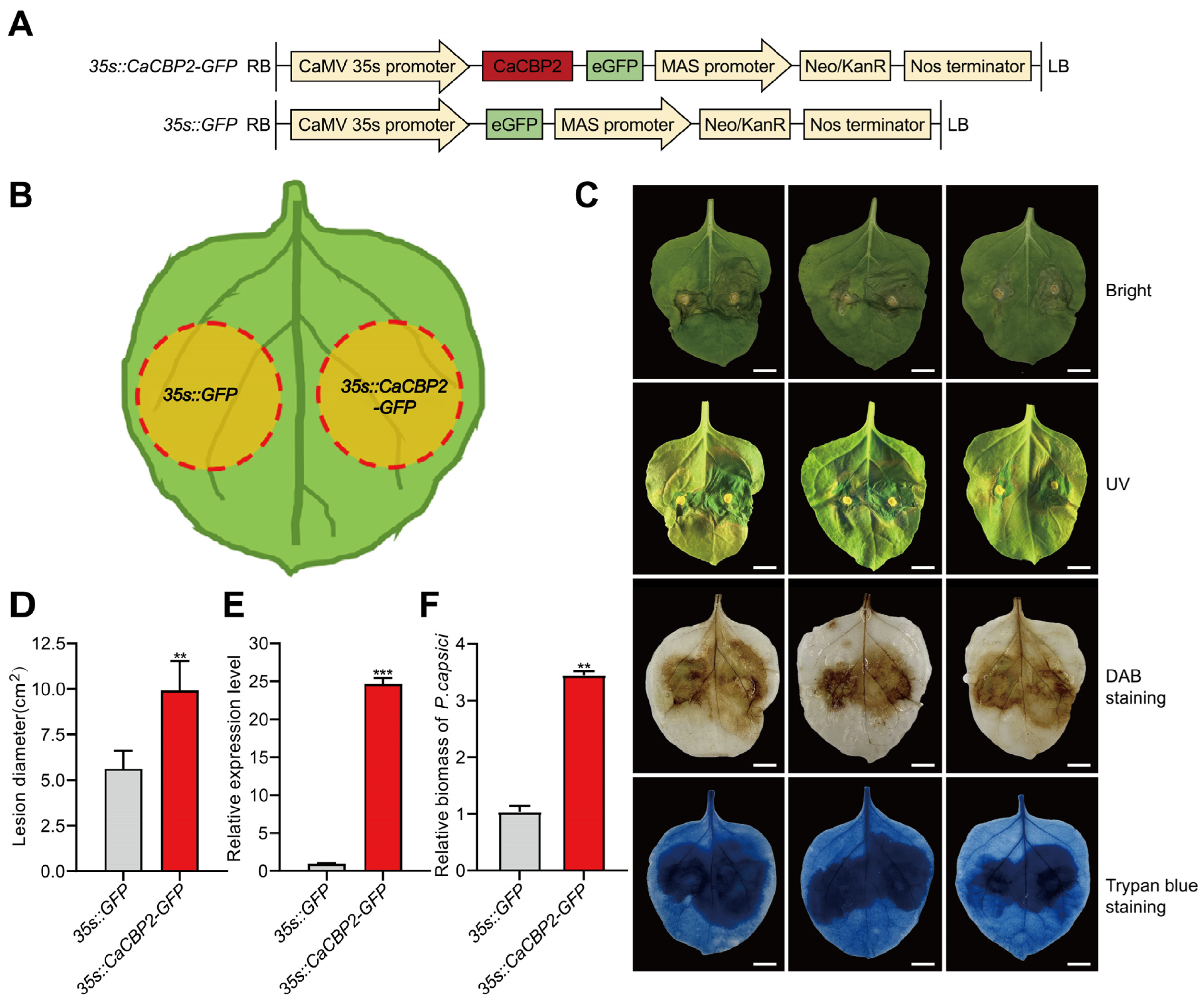 2.3. Transient Expression of CaCBP2 in N. benthamiana Enhances Susceptibility to P. capsici