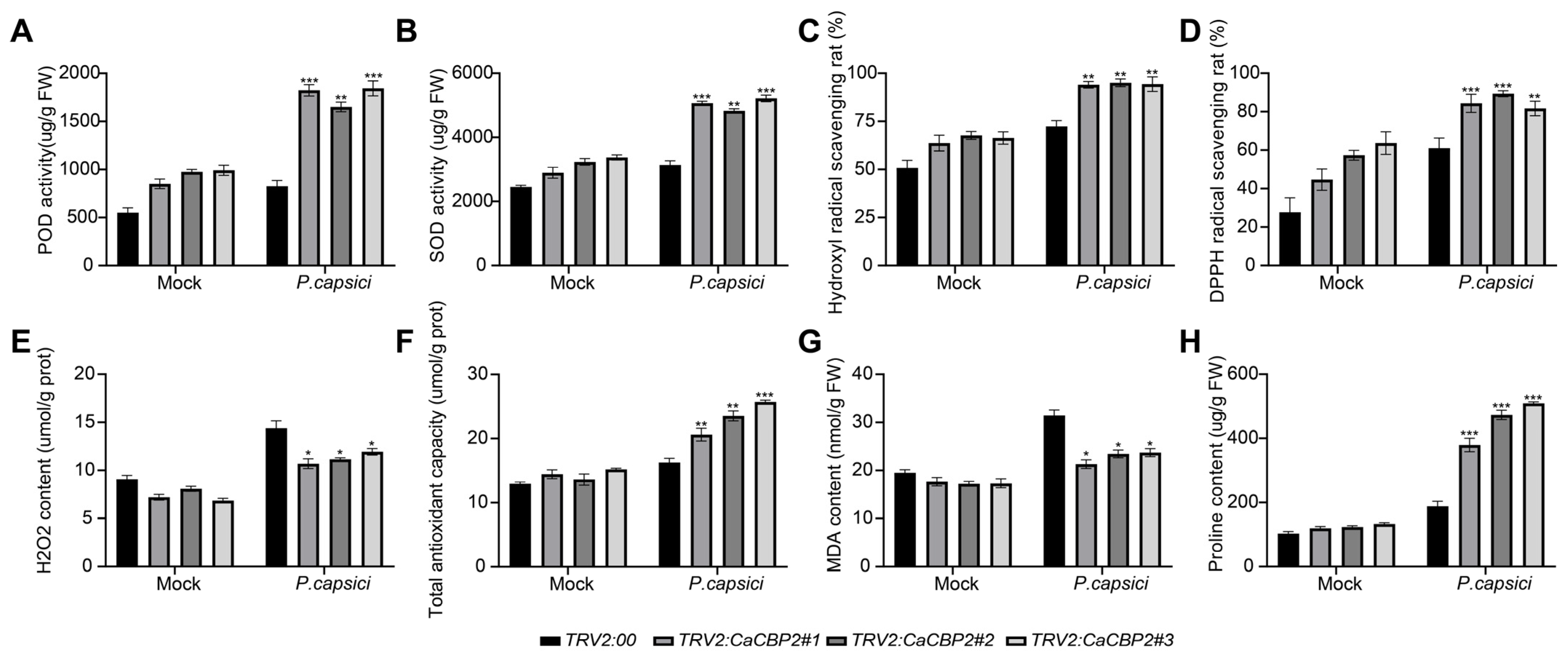 2.5. Physiological Mechanism of CaCBP2-Mediated Pepper Resistance to P. capsici