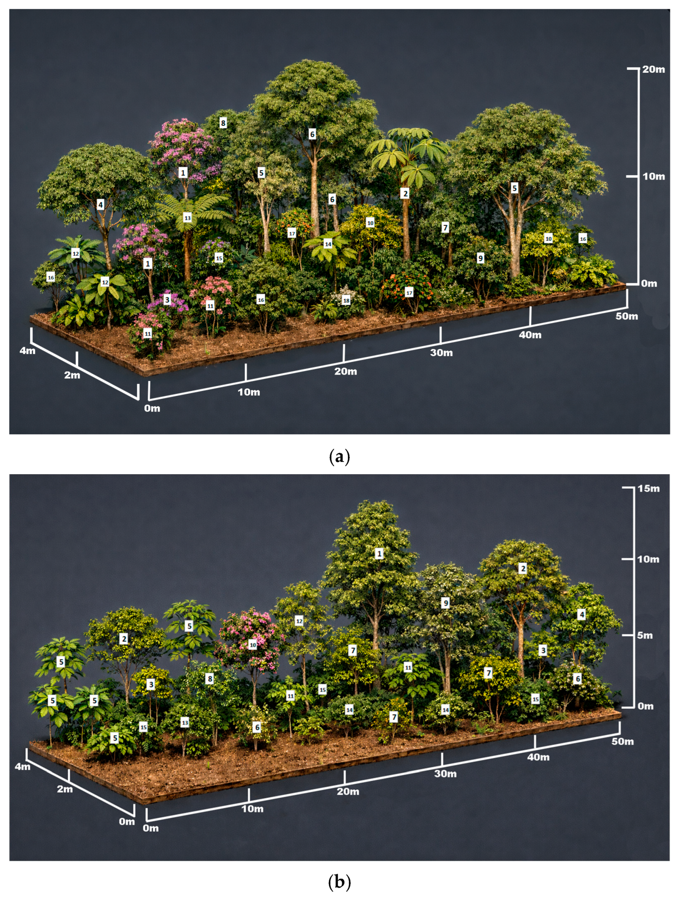 - Howorth, R.T.; Pendry, C.A. Post-Cultivation Secondary Succession in a Venezuelan Lower Montane Rain Forest. Biodivers. Conserv. 2006, 15, 693–715. [Google Scholar] [CrossRef]