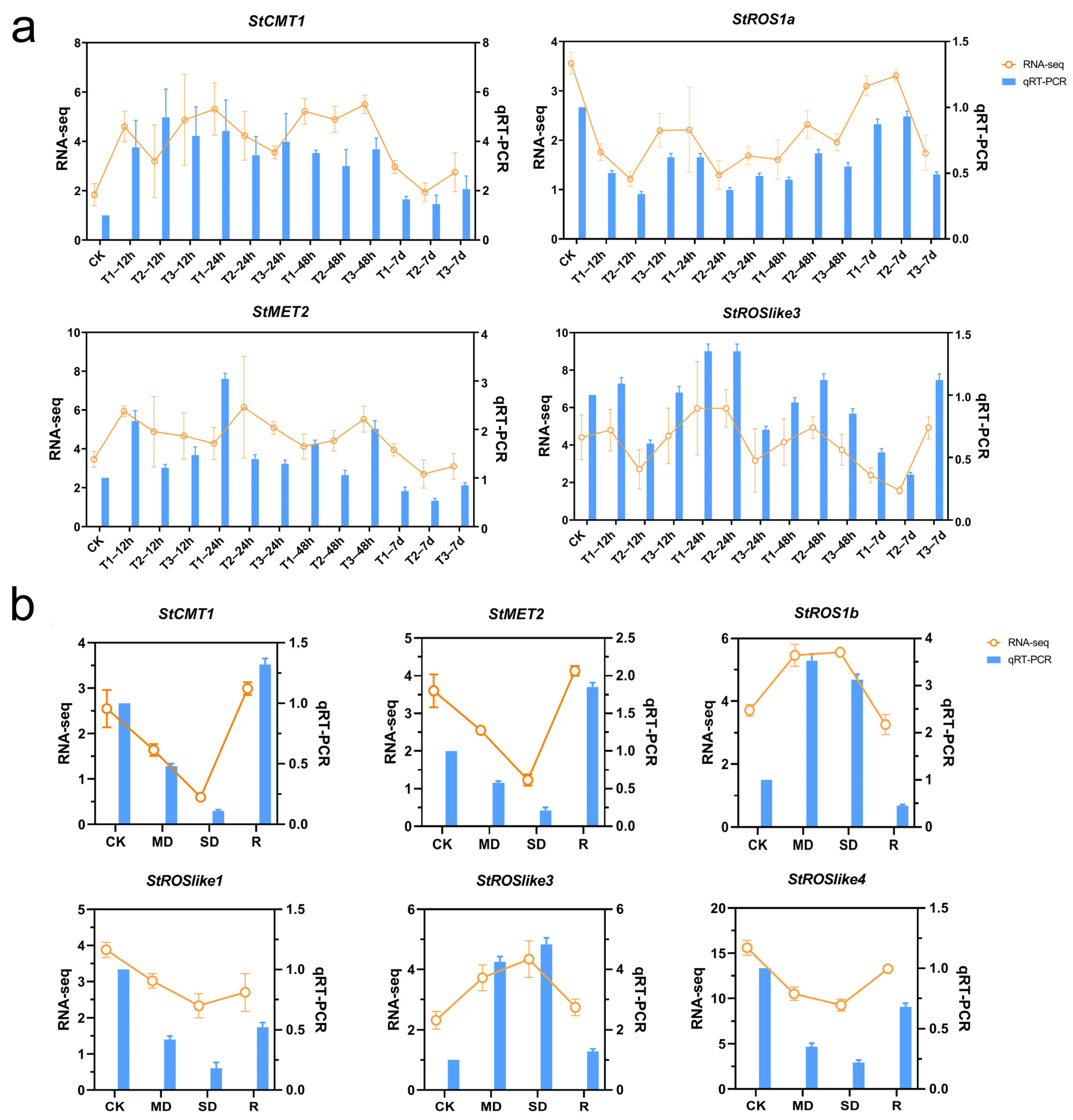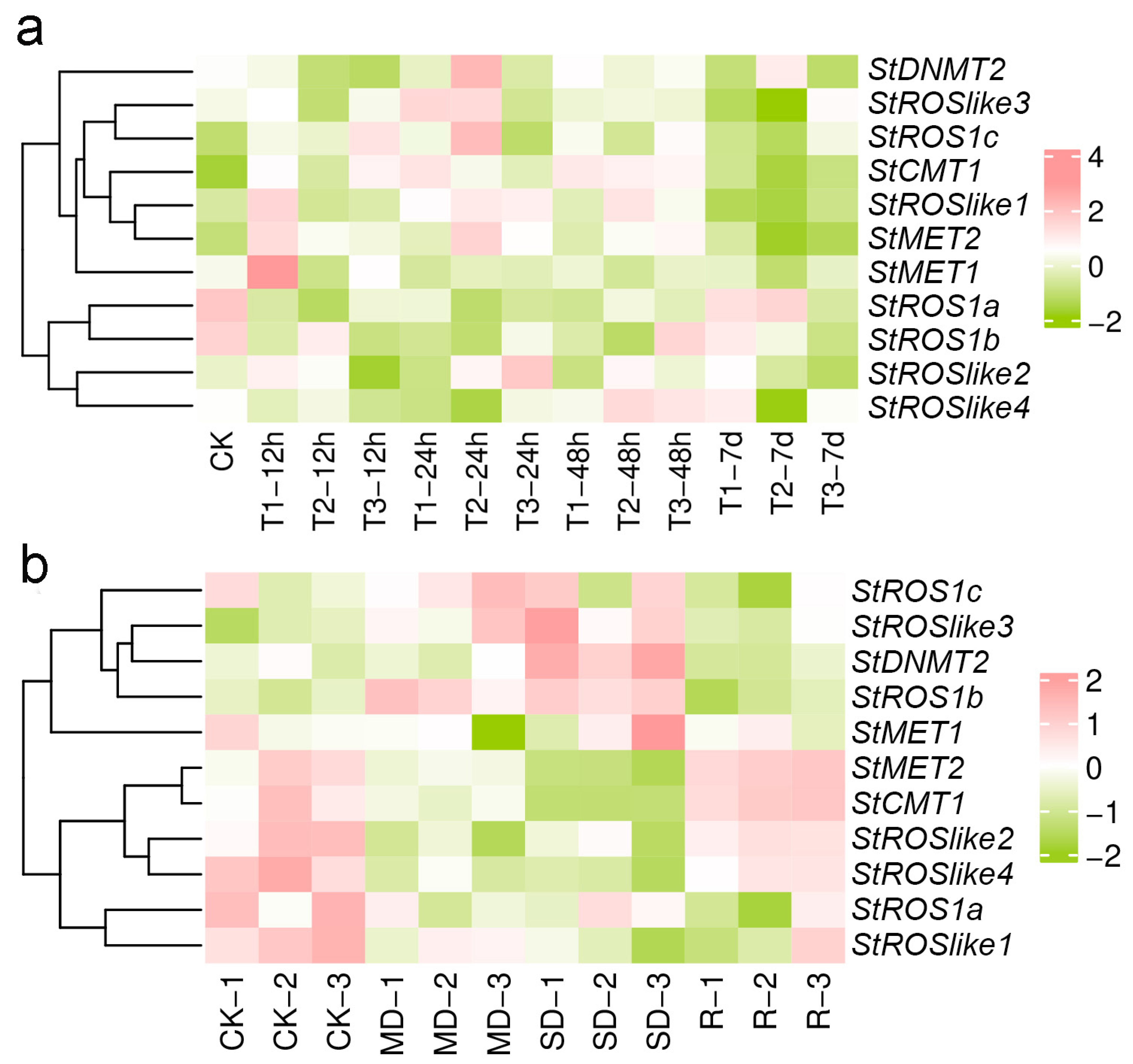 - Dutta, M.; Raturi, V.; Gahlaut, V.; Kumar, A.; Sharma, S.; Singh, S.; Kumar, M.; Tyagi, A.; Tiwari, J.K. The interplay of DNA methyltransferases and demethylases with tuberization genes in potato (Solanum tuberosum L.) genotypes under high temperature. Front. Plant Sci. 2022, 13, 933740. [Google Scholar] [CrossRef]