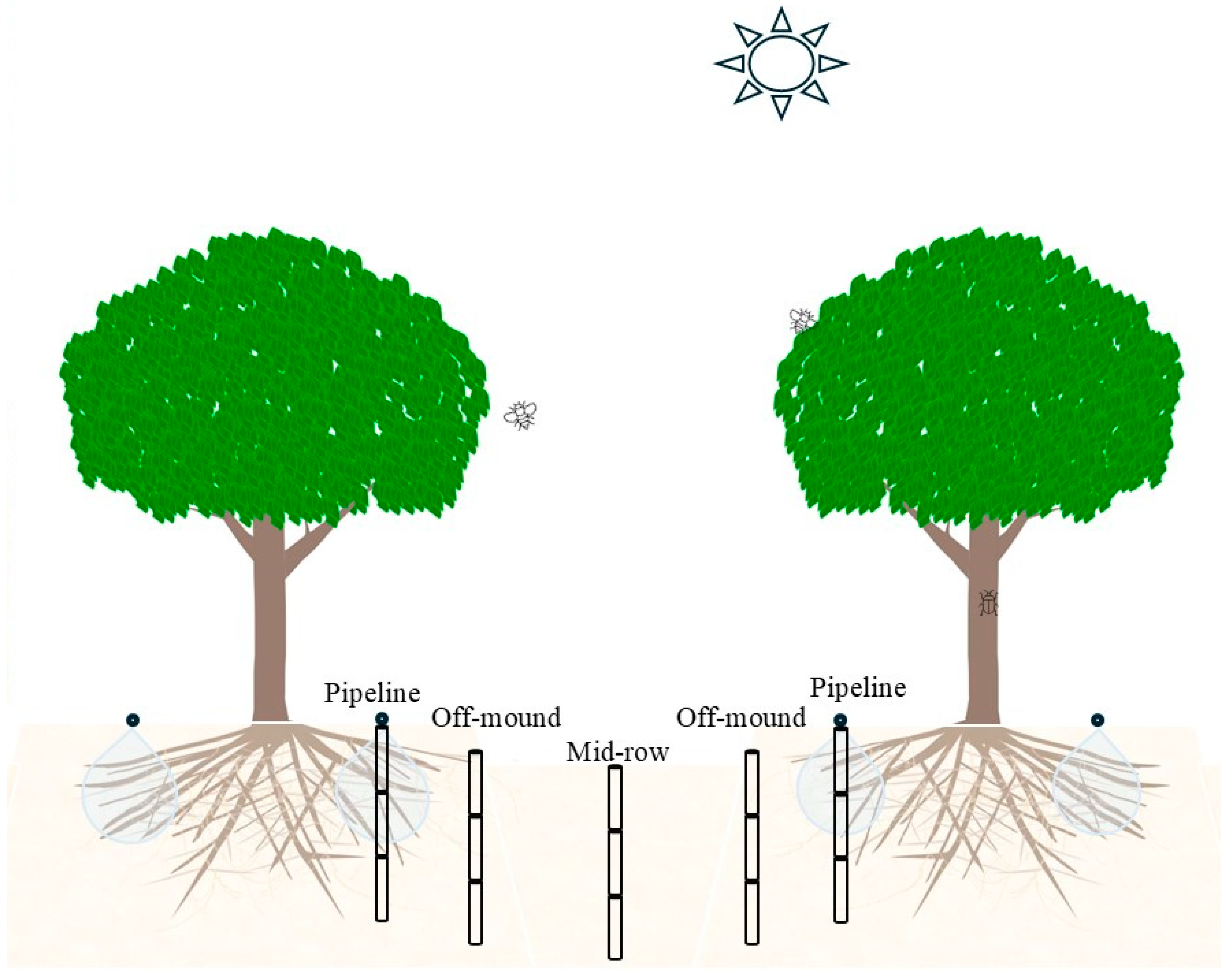 Figure 1), where the treatment-induced adjustments of root traits and tree water use in a commercial production environment were compared.