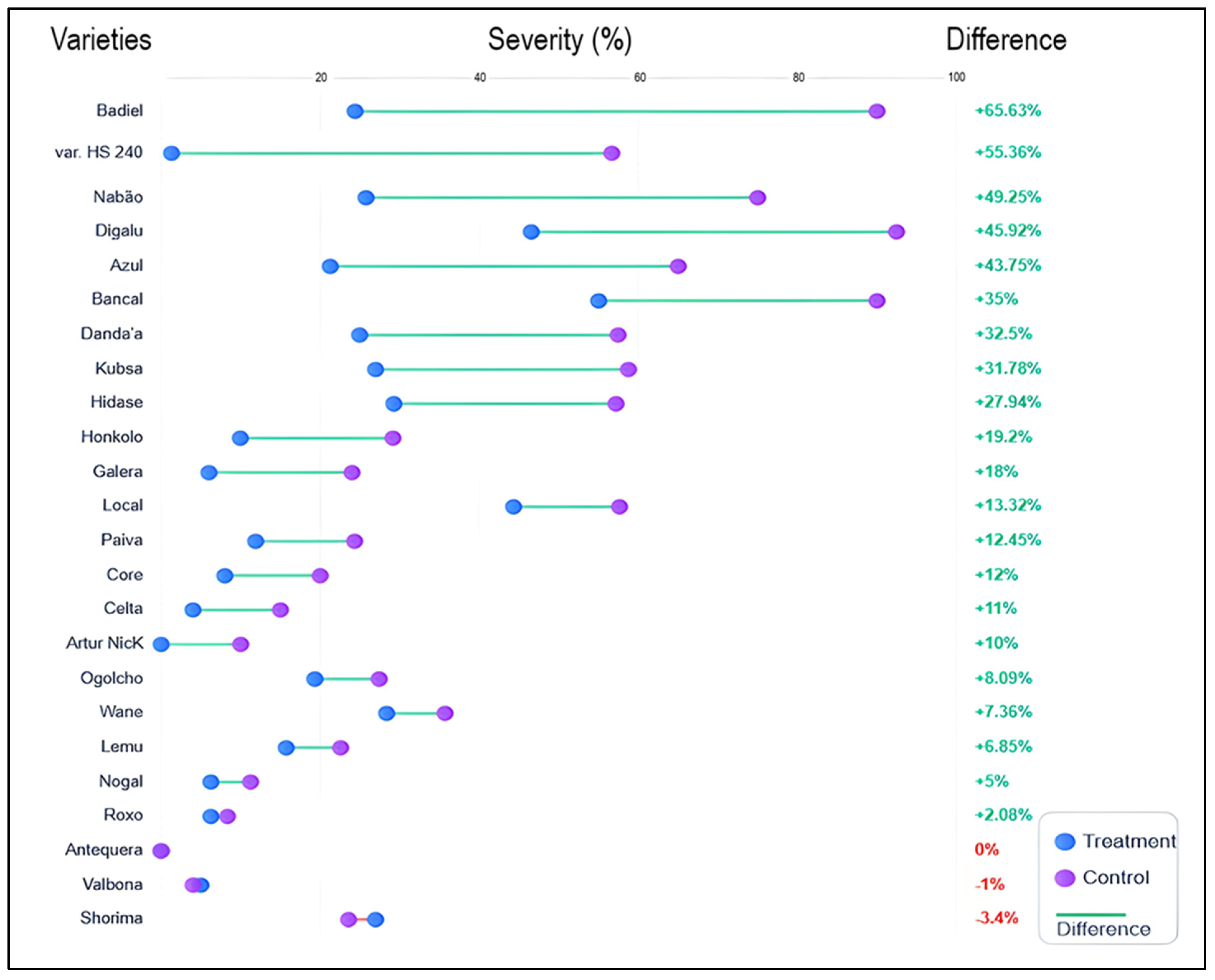 2.1.3. Cultivar-Specific Responses to Chemical Control Against Stripe Rust