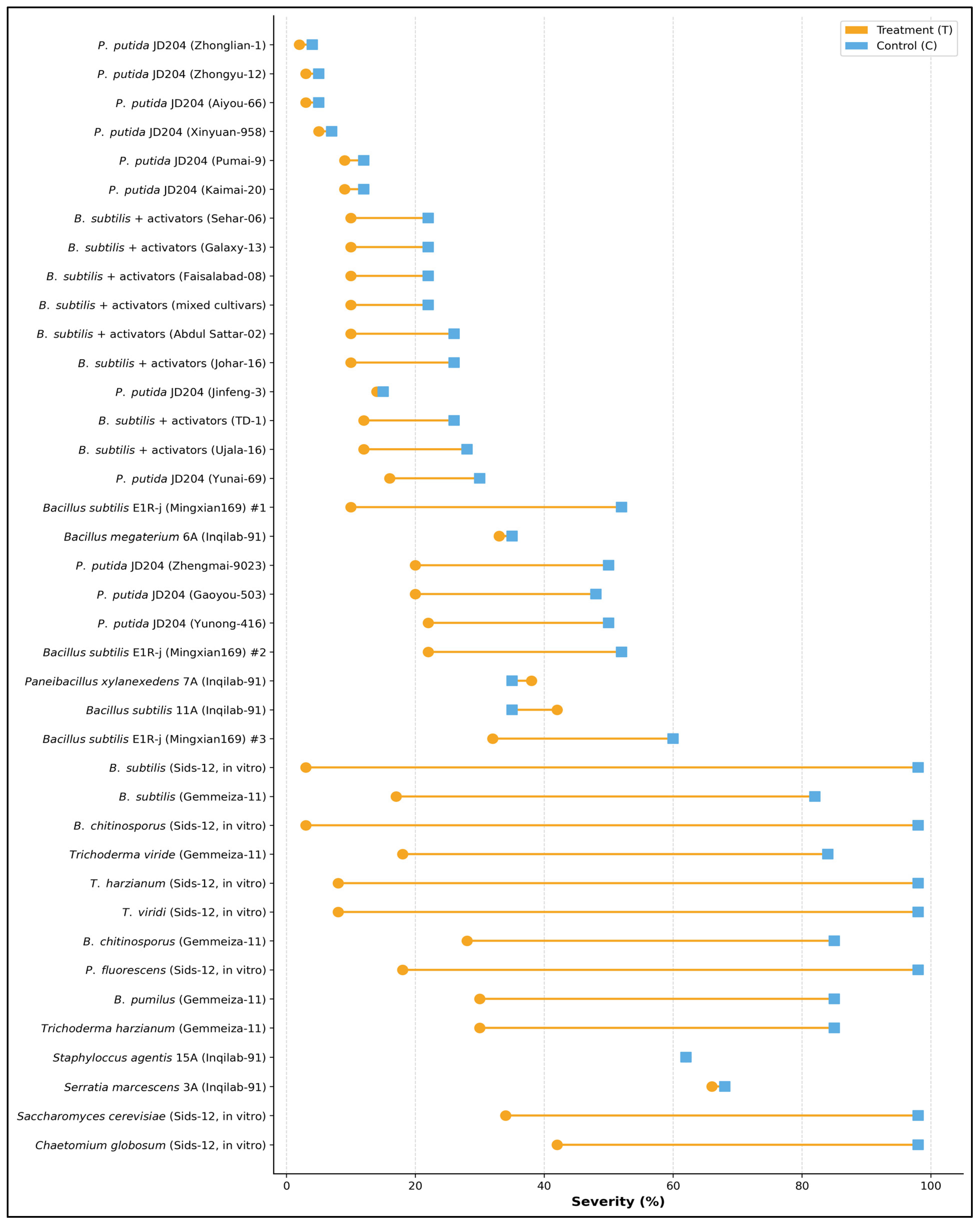 2.2.3. Strain-Specific Efficacy of Biological Control Agents Against Stripe Rust