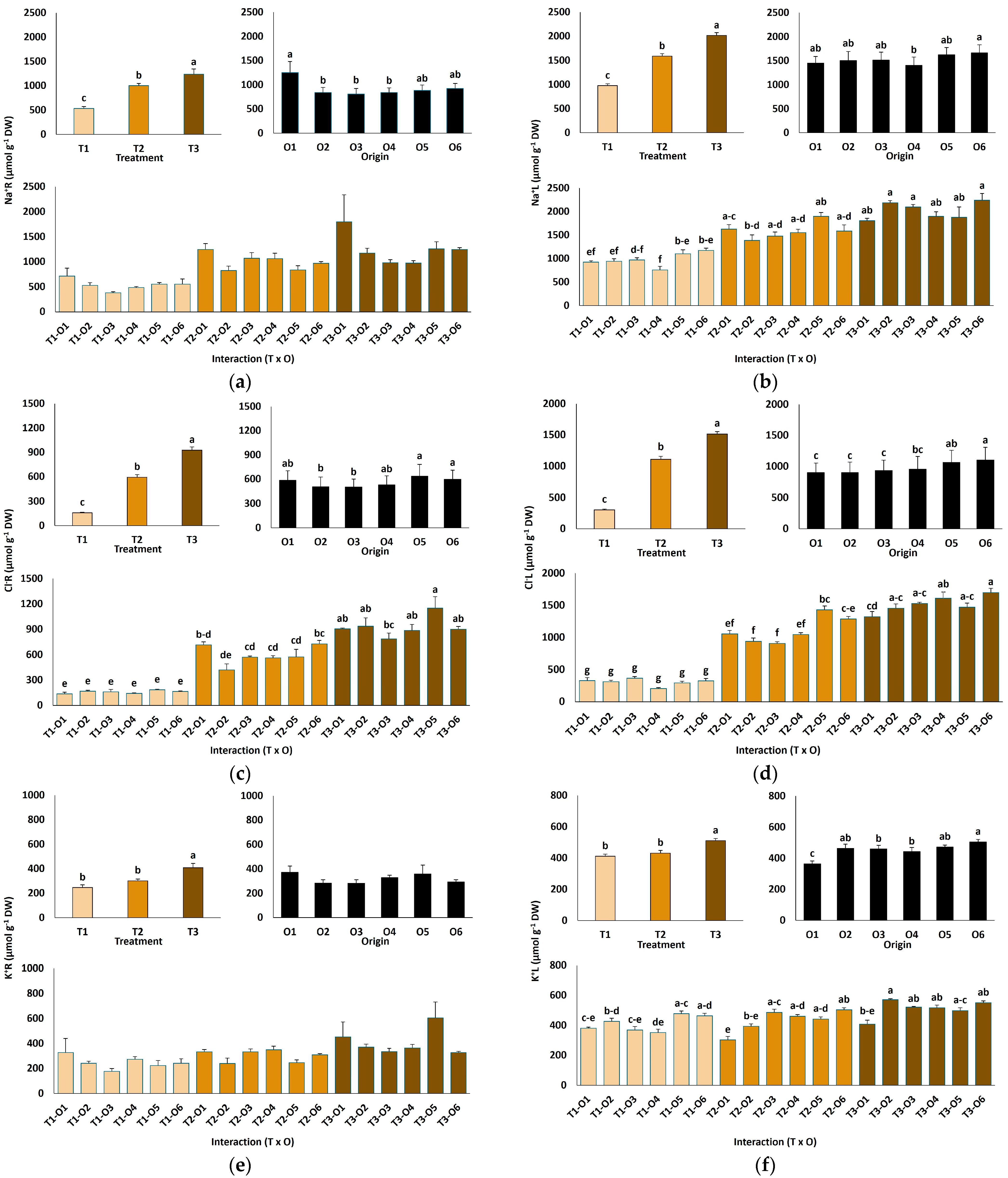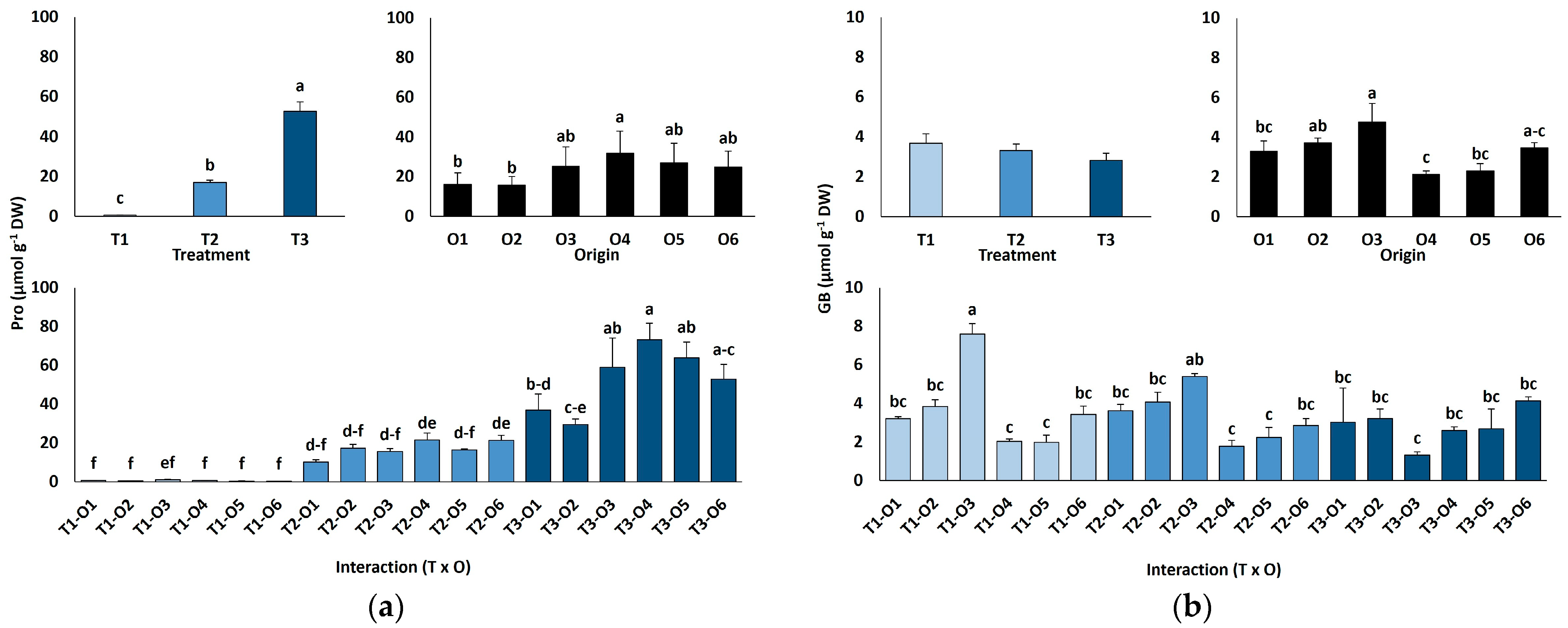 - Singh, P.; Choudhary, K.K.; Chaudhary, N.; Gupta, S.; Sahu, M.; Tejaswini, B.; Sarkar, S. Salt stress resilience in plants mediated through osmolyte accumulation and its crosstalk mechanism with phytohormones. Front. Plant Sci. 2022, 13, 1006617. [Google Scholar] [CrossRef]