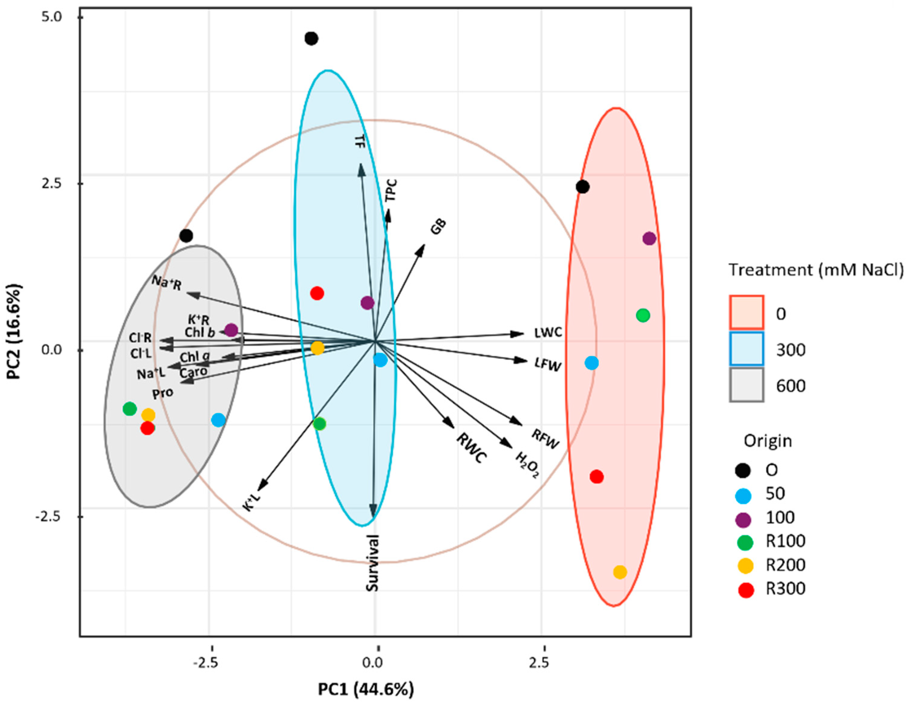 - Hmissi, M.; Krouma, A.; García-Sánchez, F.; Chaieb, M. Potential of seed halopriming in the mitigation of salinity stress during germination and seedling establishment in durum wheat (Triticum durum Desf.). Plants 2023, 13, 66. [Google Scholar] [CrossRef]