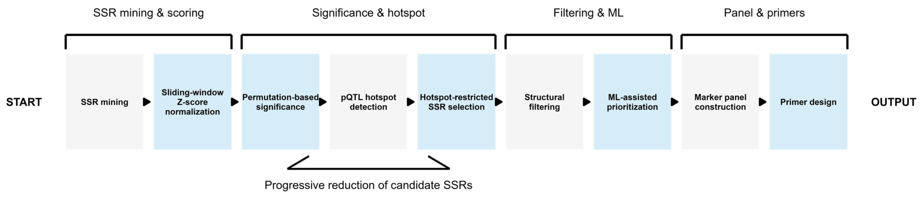 4.8. Integrated Pipeline for pQTL-Guided and Machine Learning-Assisted SSR Marker Development