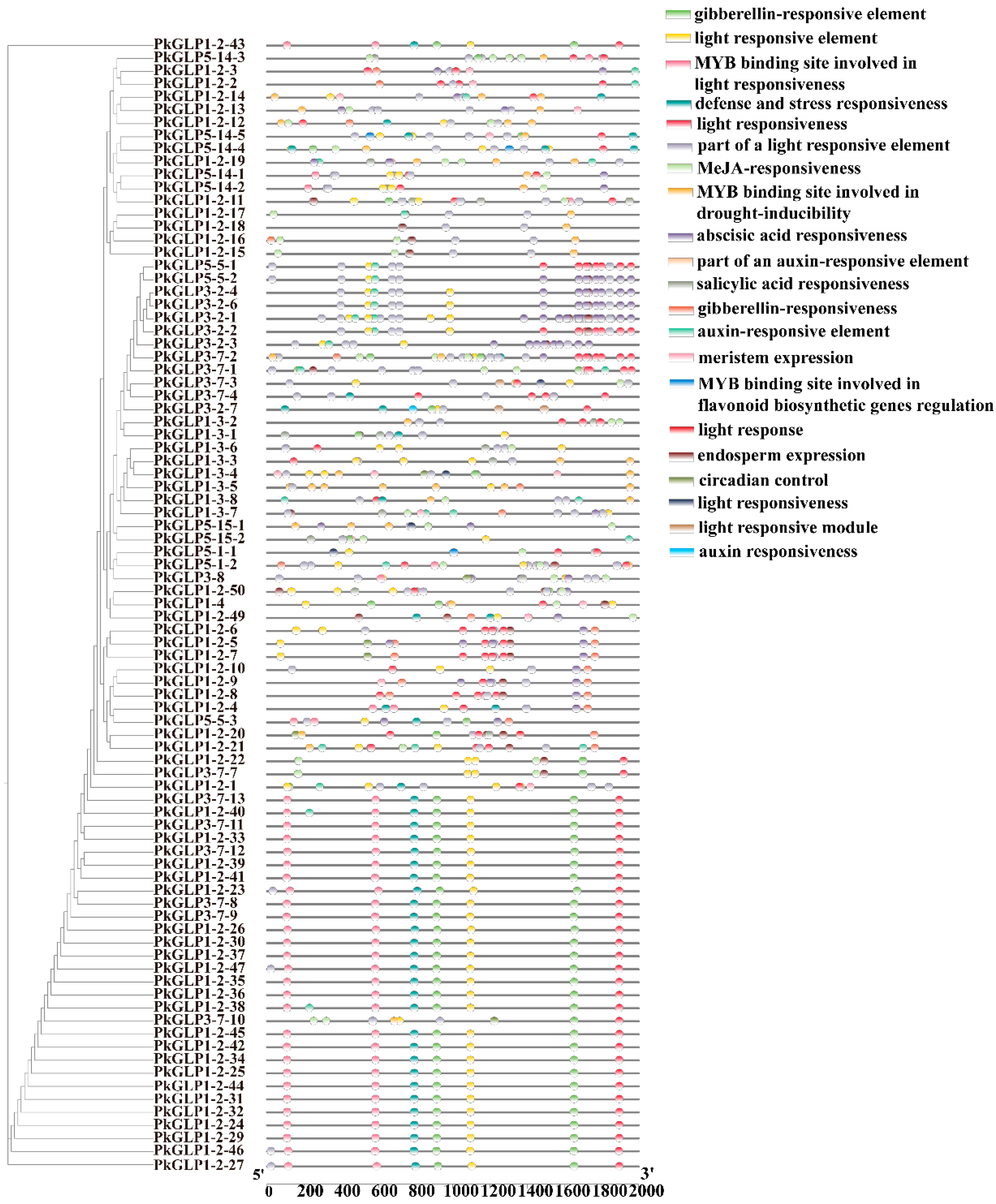 2.6. Analysis of Cis-Acting Elements of PkGLP Promoter