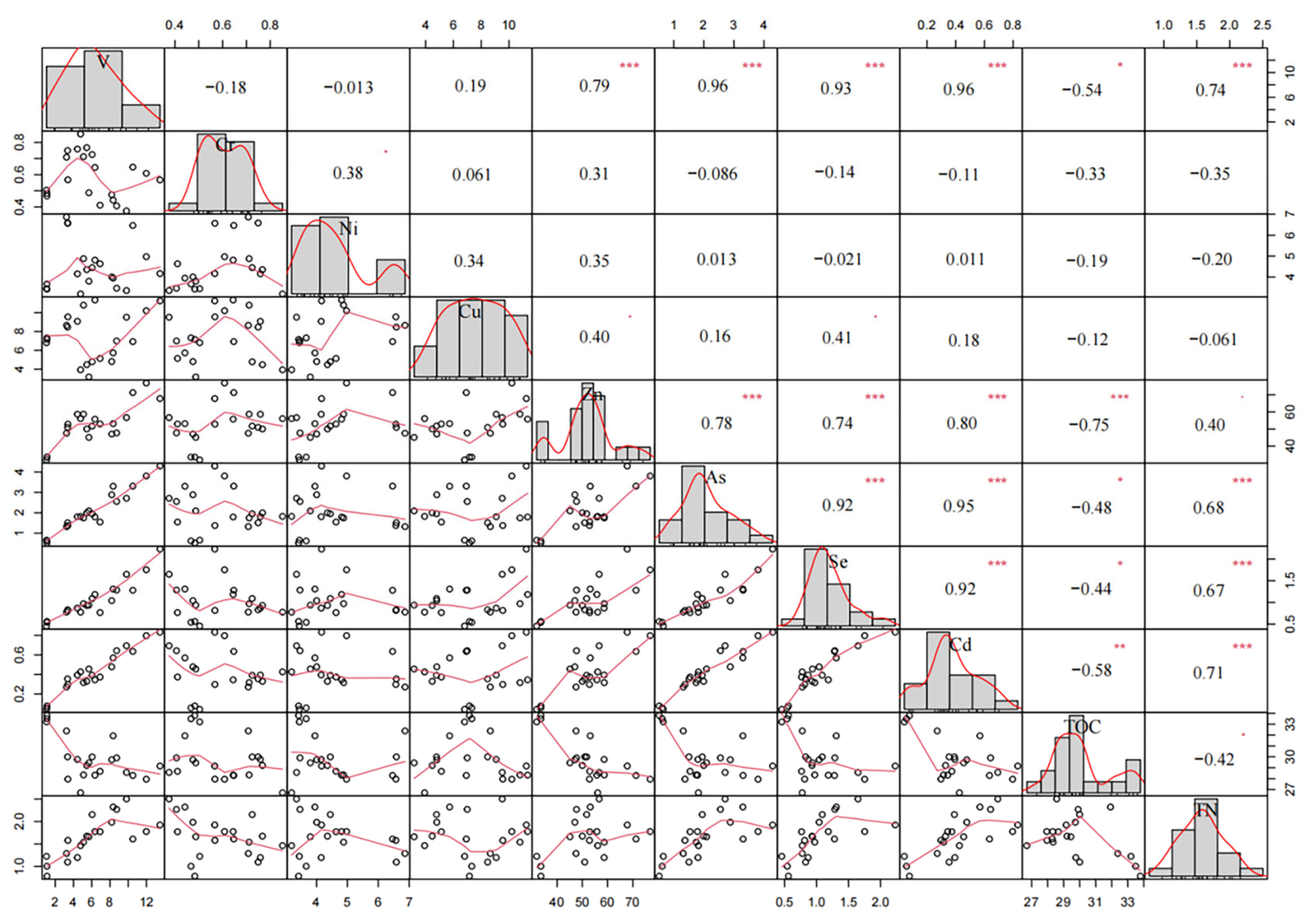 4.2. Correlation Analysis of Heavy Metals