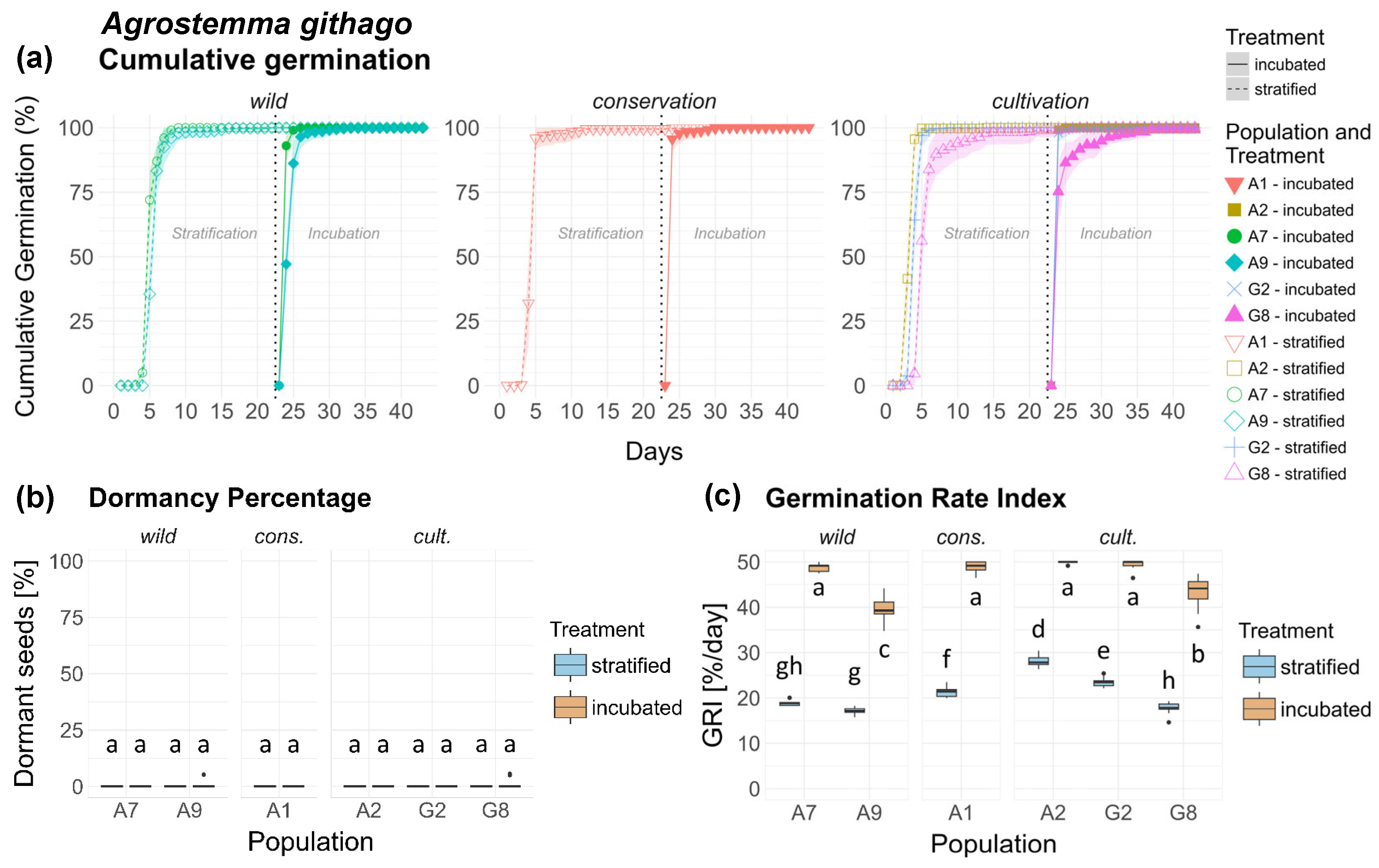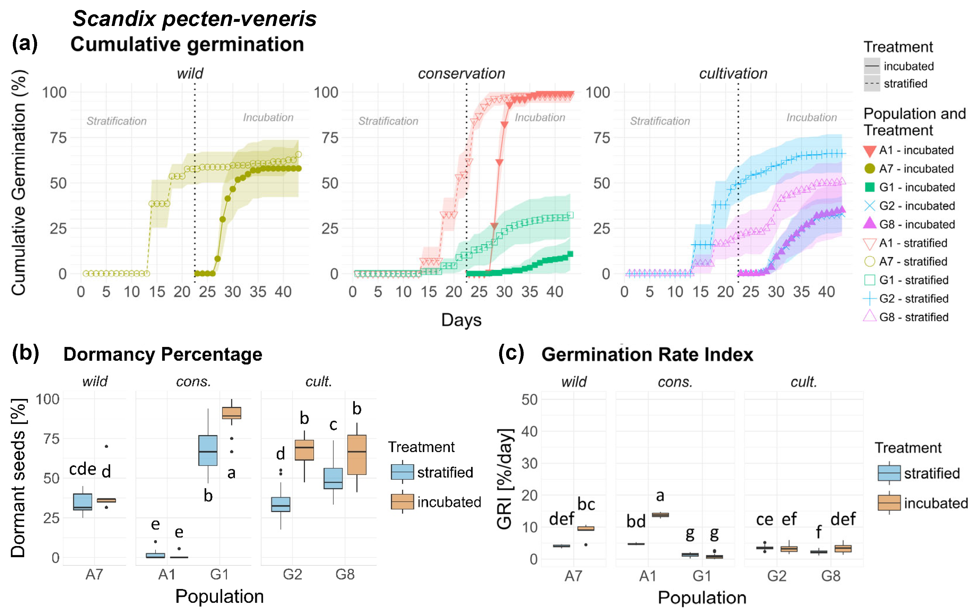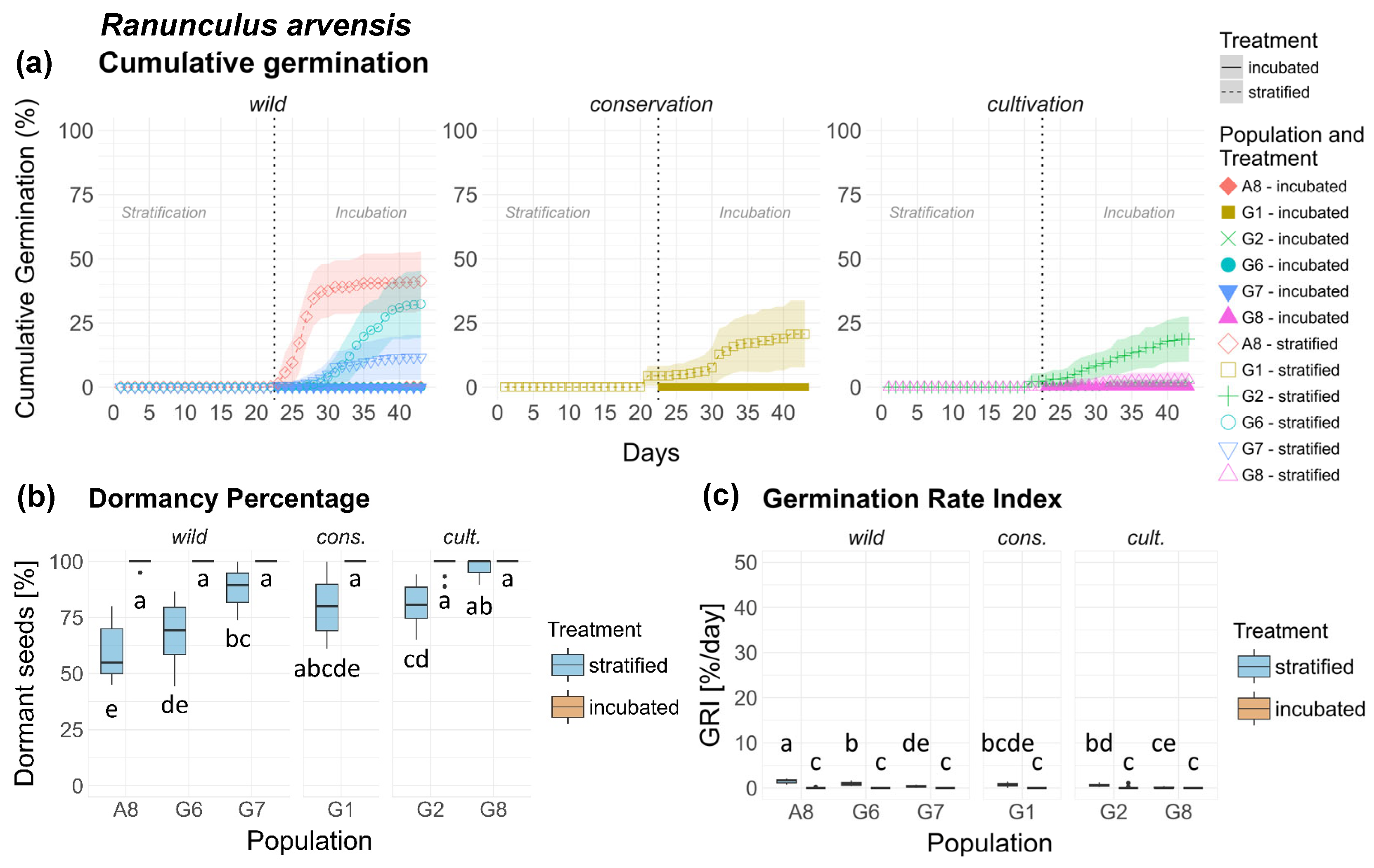 - Seeds of arable herbs that underwent horticultural conservation or agricultural cultivation germinate faster, and the short-term germination rate is higher, than seeds from wild populations.