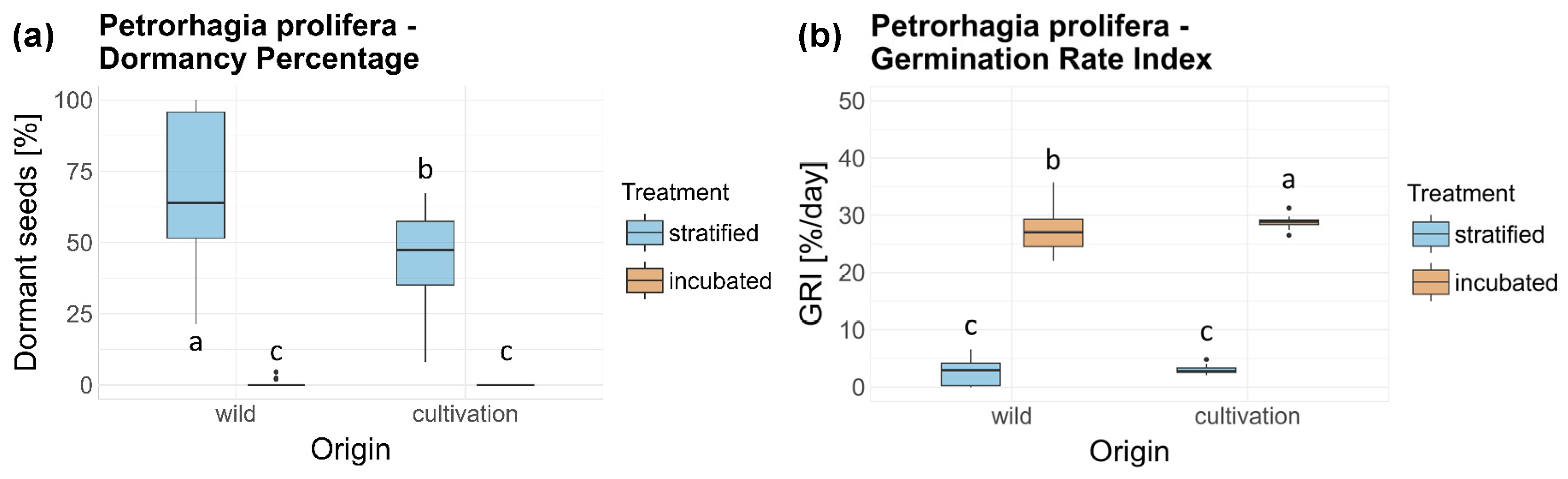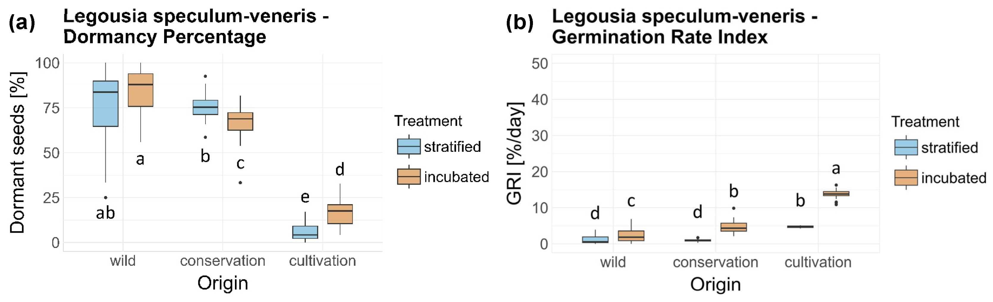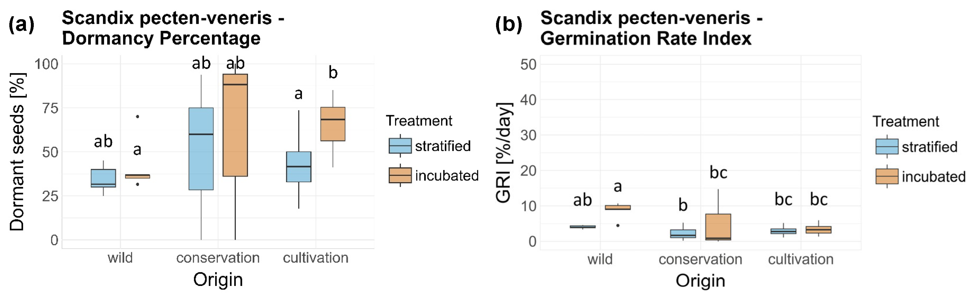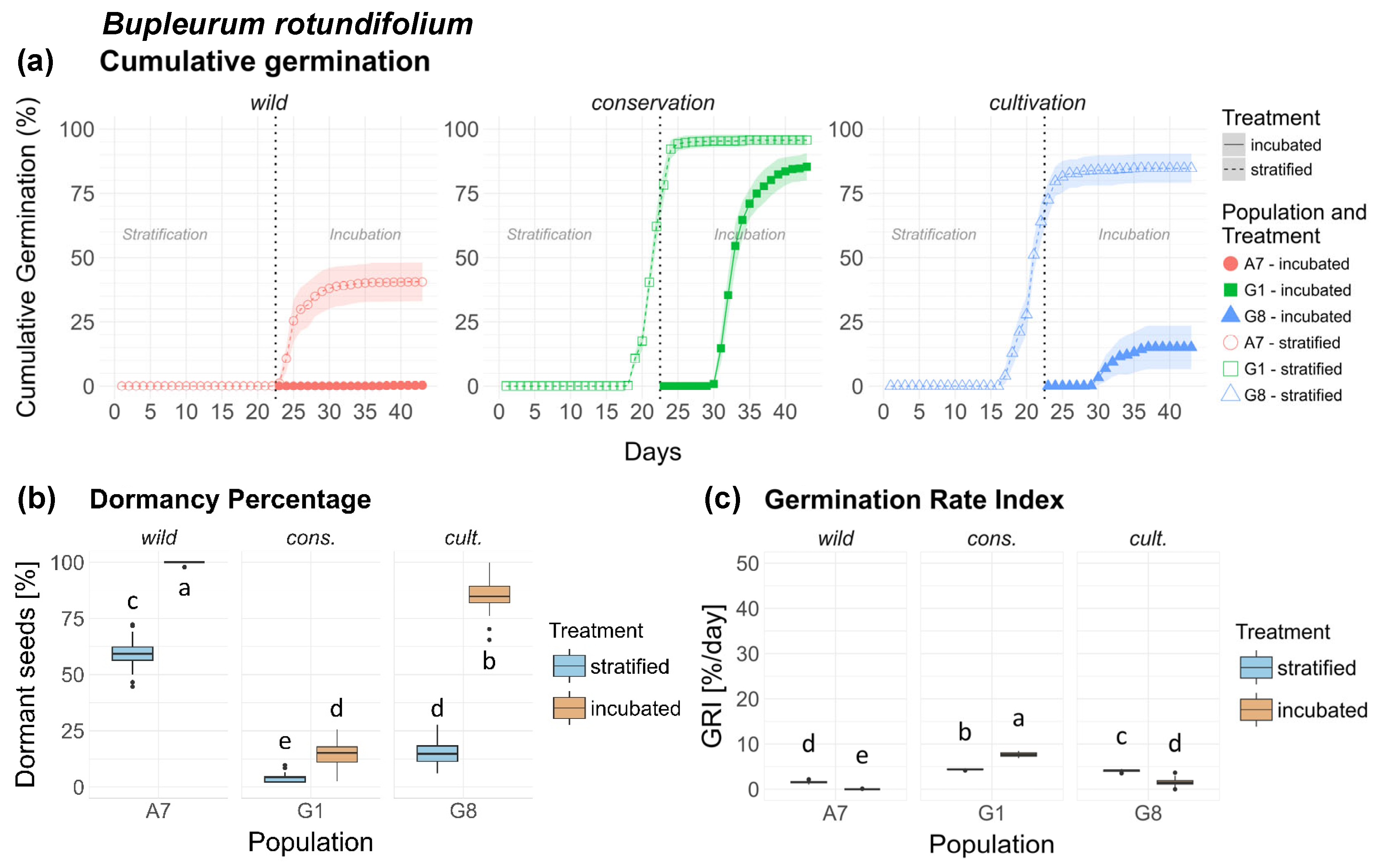 - Seeds of arable herbs that underwent horticultural conservation or agricultural cultivation germinate faster, and the short-term germination rate is higher, than seeds from wild populations.