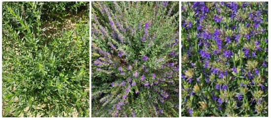 - Kotyuk, L. Hyssop composition depending on age and plants development phases. Biotechnol. Acta 2015, 8, 55–63. [Google Scholar] [CrossRef]