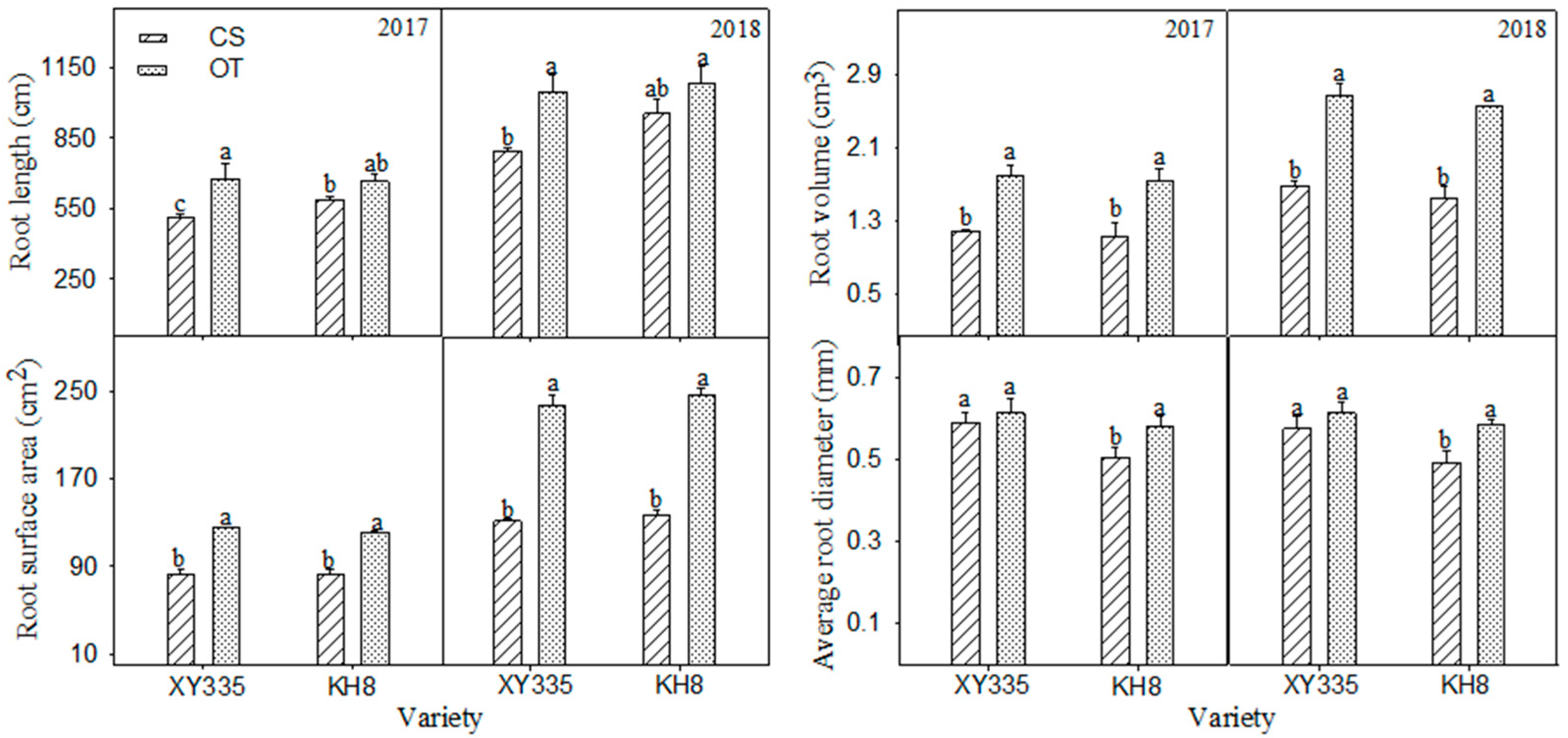 | CS | XY335 | 142.3 b | 7.2 a | 597.6 b | 413.3 a | 15.4 ab | 196.5 a | |