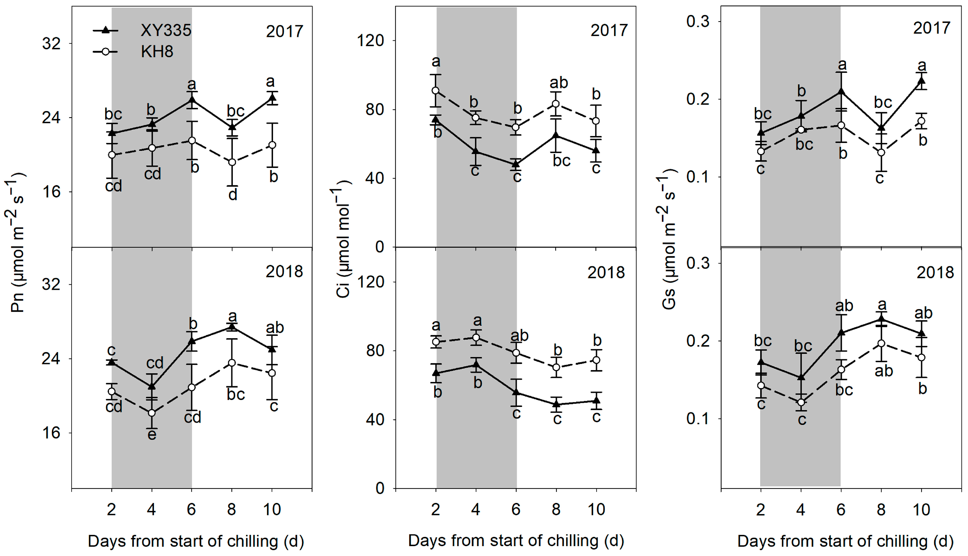 | CS | XY335 | 96.3 a | 9.9 b | 42.5 c | |