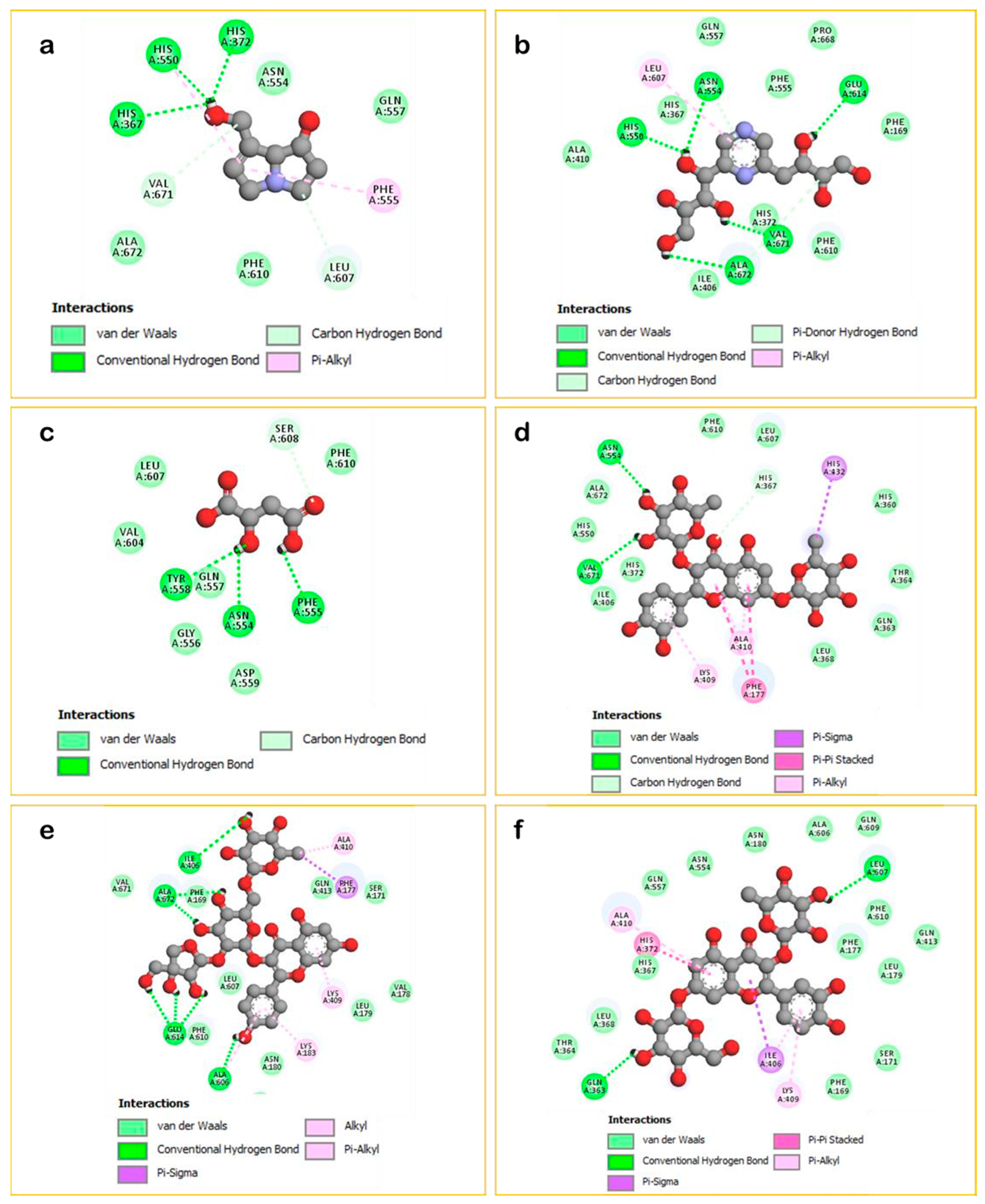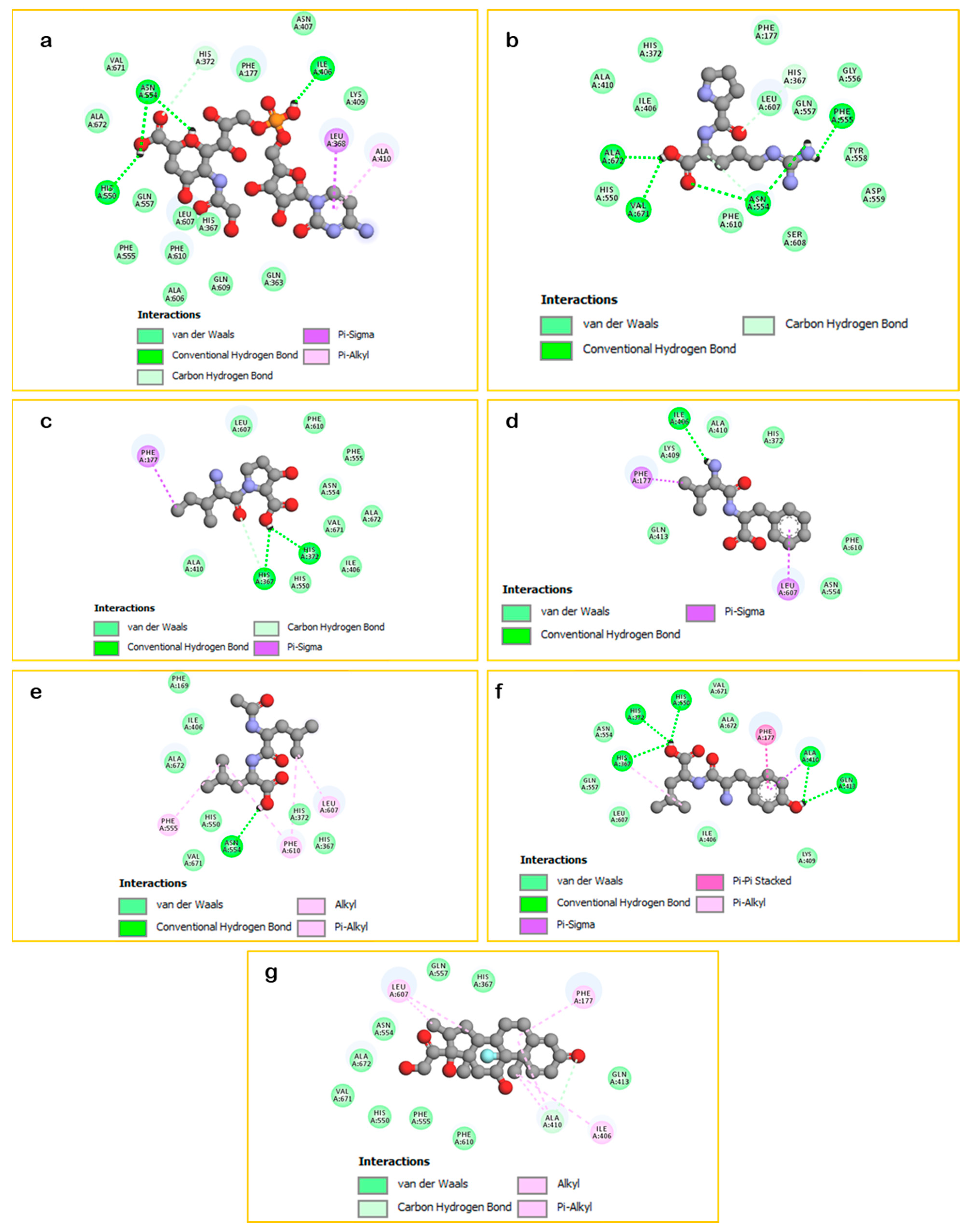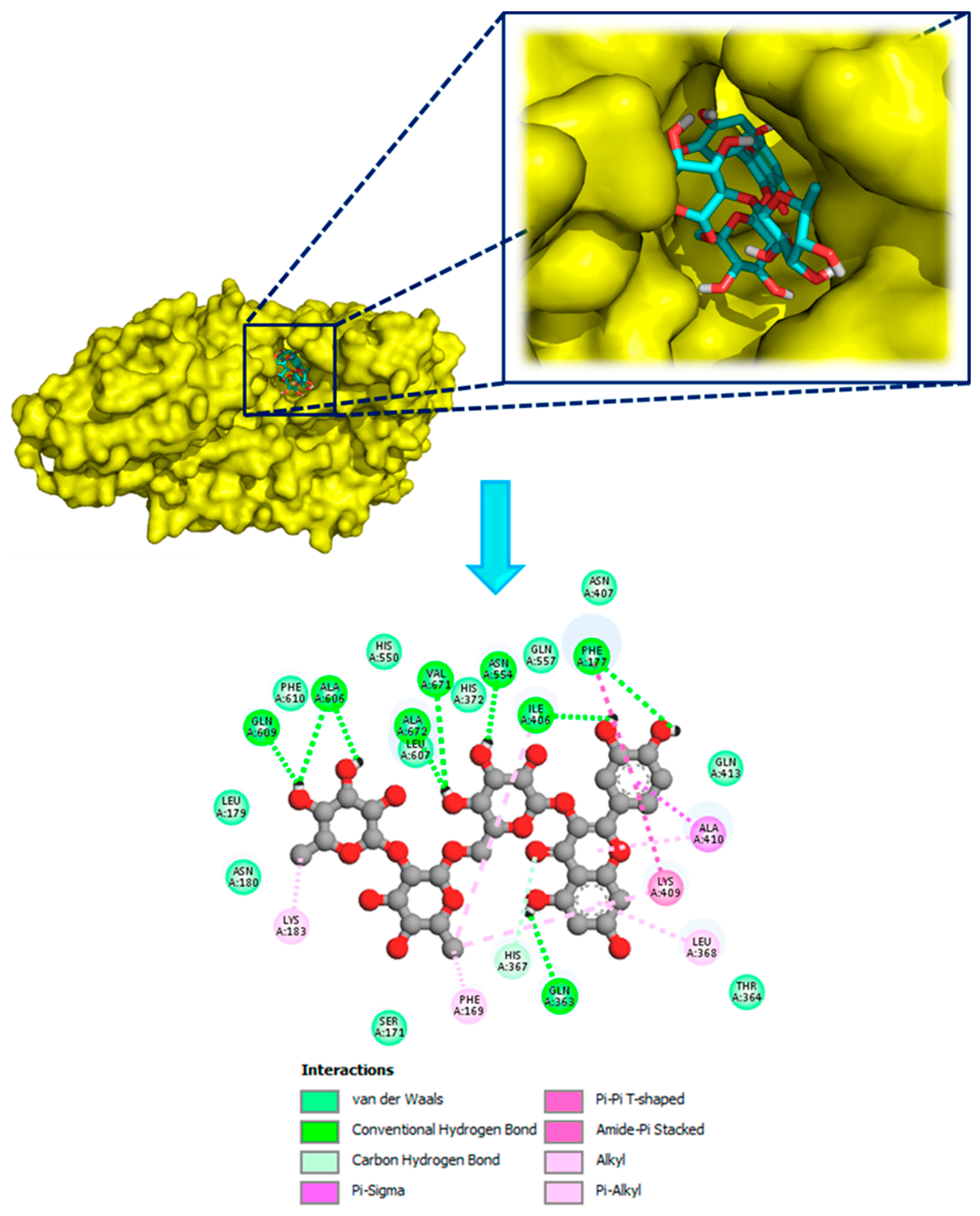 | Kaempferol 3-(2G-apiosylrobinobioside) (F) | −8.4 |
