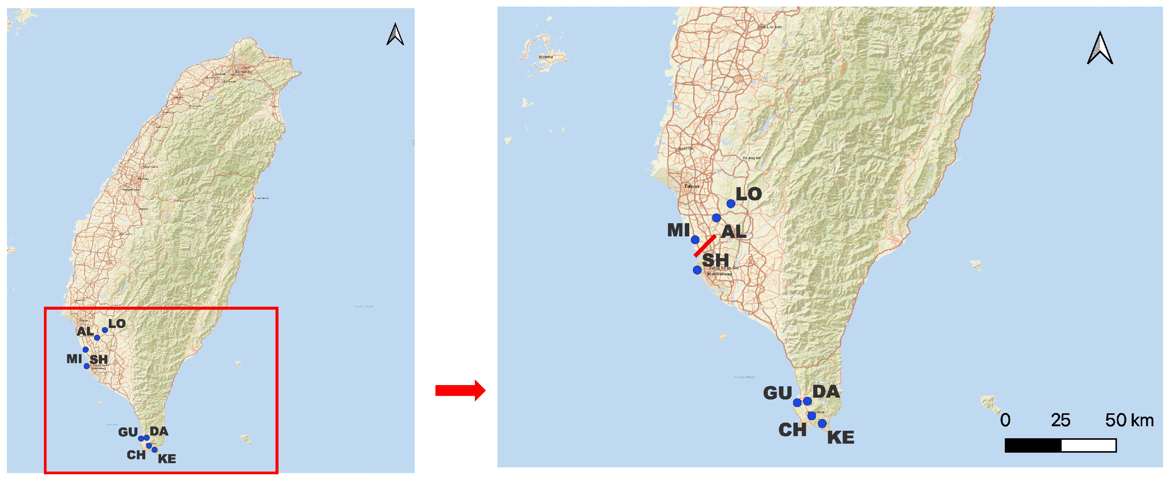 | Alian | AL | 22.86486, 120.34594 | 4 | |