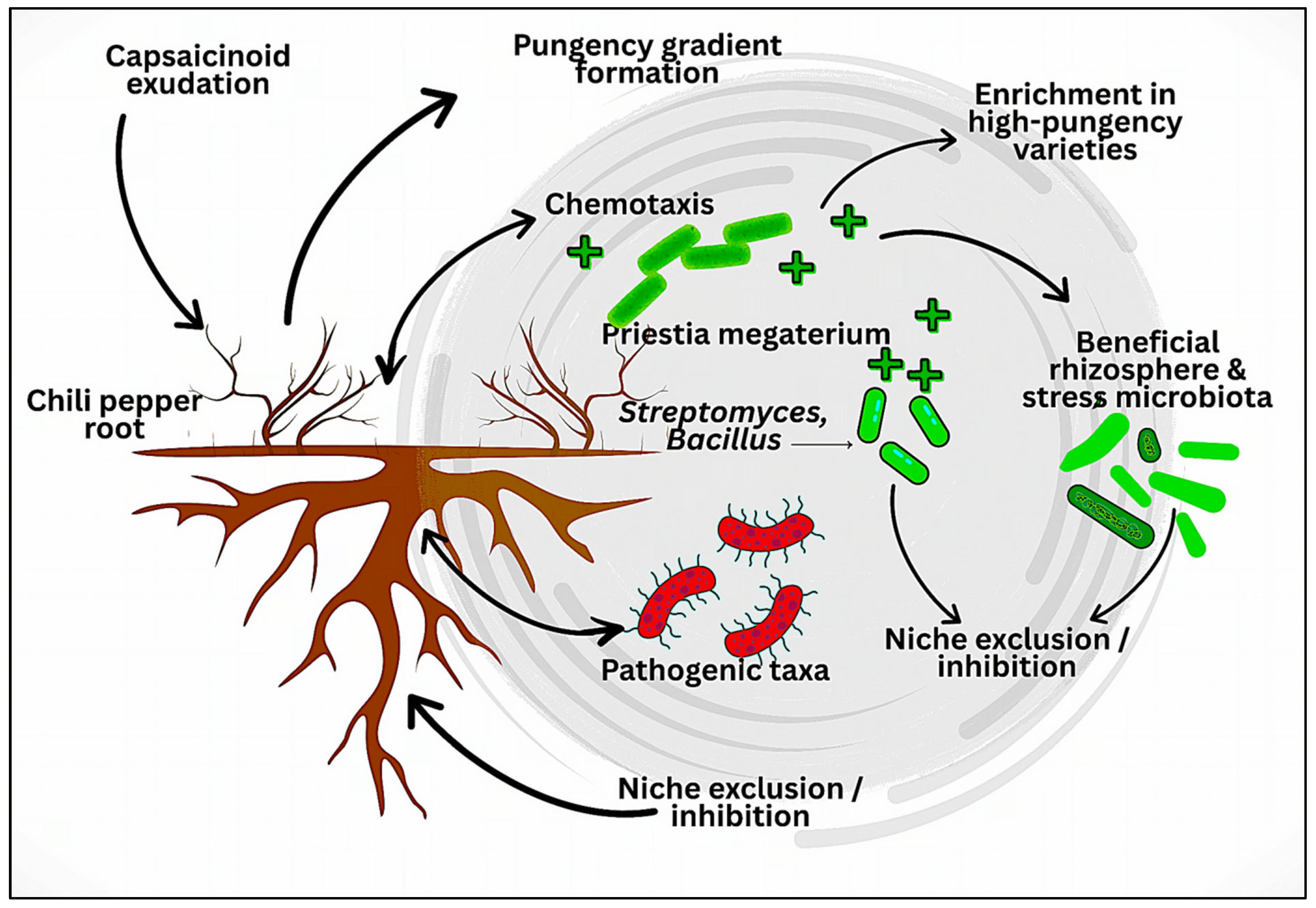 - Liu, Y.; Zhu, Y.; Li, J.; Wei, Y.; Ding, G.-C. Two ecological rules behind randomness in the microbiome associated with pepper (Capsicum annuum) root. Plant Soil 2025, 512, 947–962. [Google Scholar] [CrossRef]