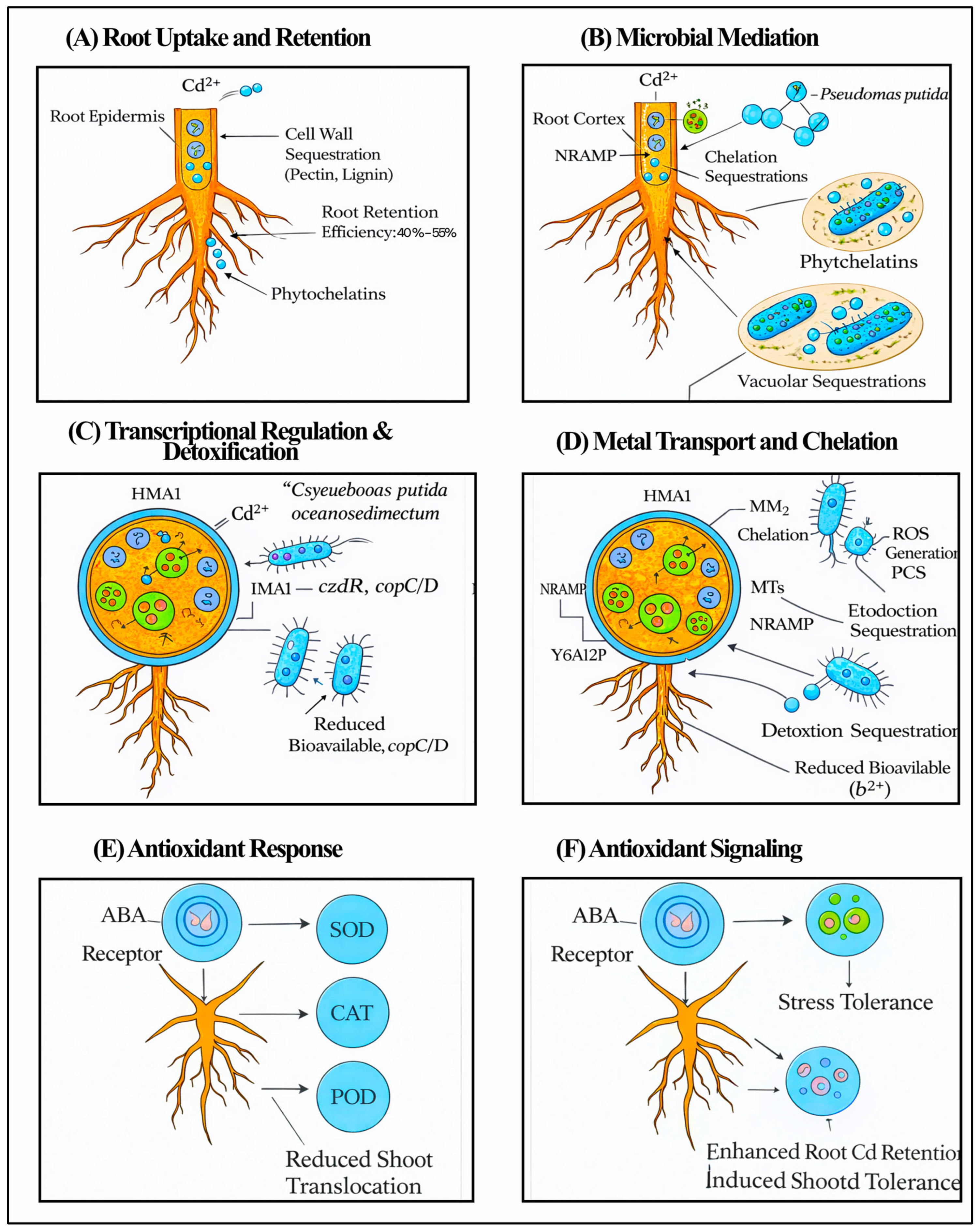 | Root Cd retention | Cd Stress | NR | NR | 40–55% | HMA1/Cell wall binding | [6] |