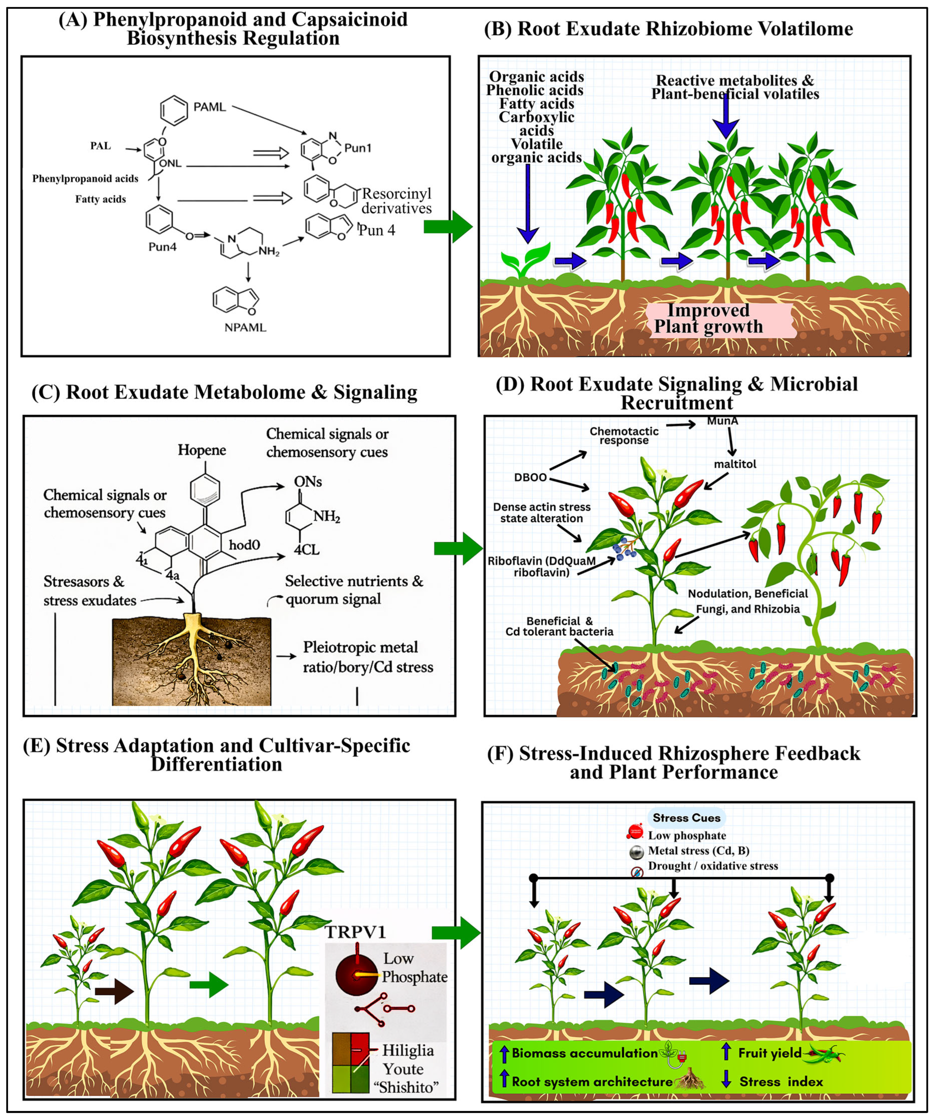 APA StyleHaidri, I., Ullah, Q., Qasim, M., Amir, M. A., Haider, W., Nguyen, H. H., & Promwee, A. (2026). Microbiome-Mediated Cd Stabilization in Chilli Pepper: Roles of Capsaicinoids and Cultivar Genetics Under Environmental Stress. Plants, 15(4), 630. https://doi.org/10.3390/plants15040630