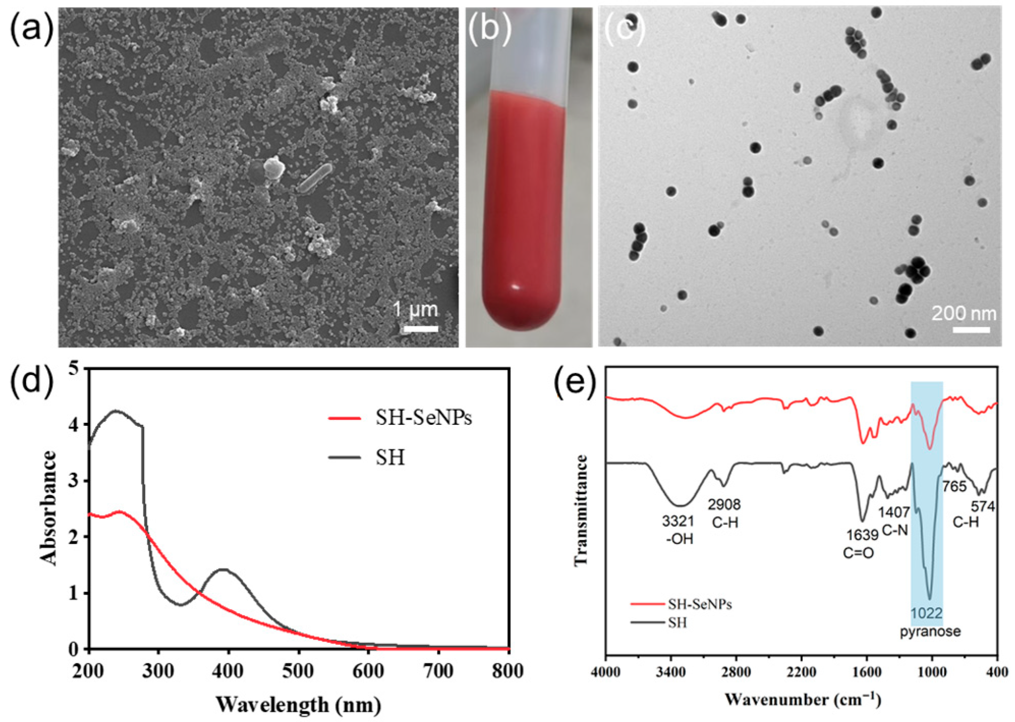 2.1. Synthesis and Characterization of SH-SeNPs