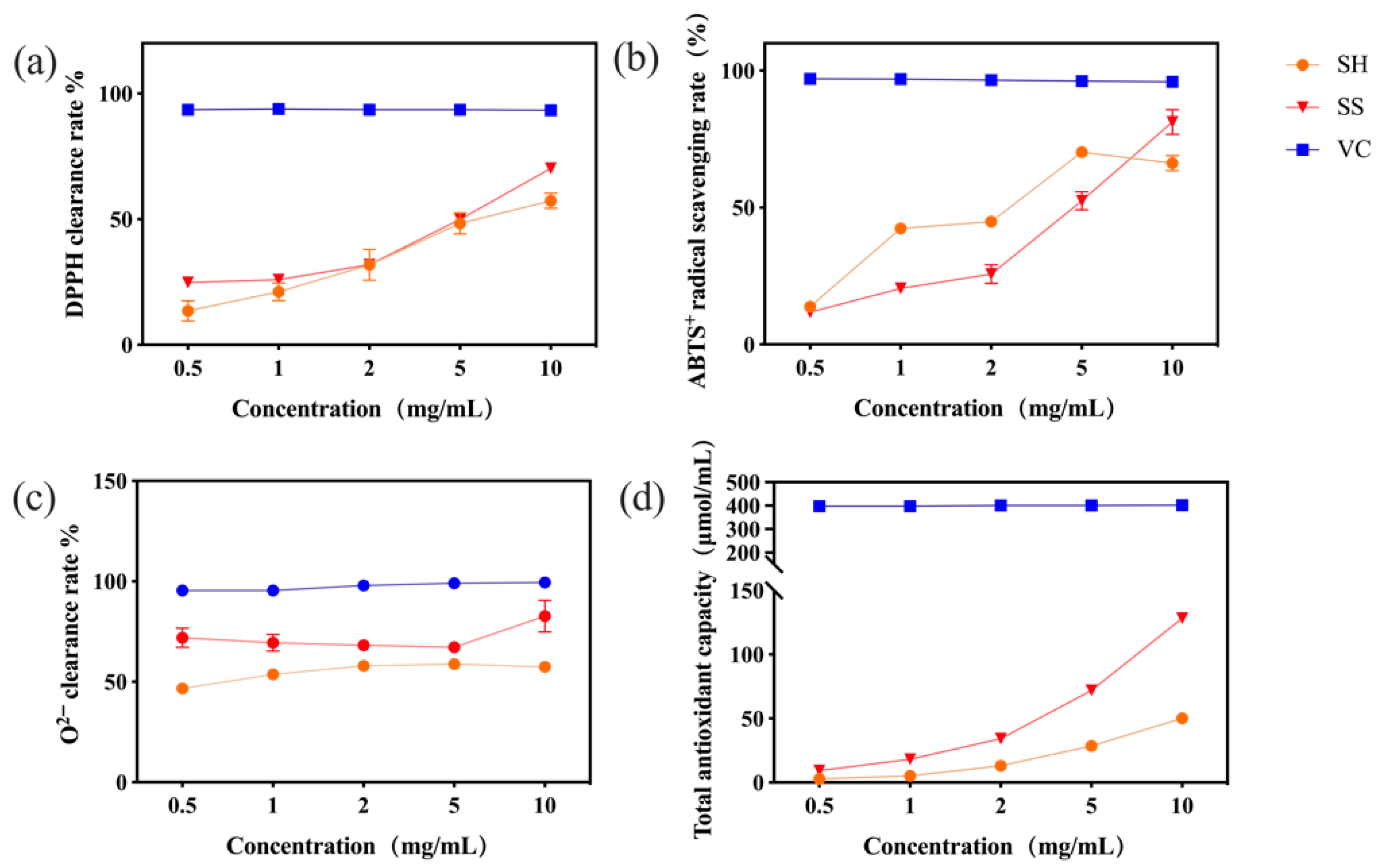 - Zhang, L.; Wang, Q.; Gao, N.; Lin, G.; Hu, D.; Liu, J.; Wang, J.; Zhao, S.; Zhang, J.; Zheng, T.; et al. The study on in vitro antioxidant properties, cellular immune activities and mice anti-fatigue effects of Sanghuangporus vanninii mycelium polysaccharides. Food Biosci. 2024, 61, 104640. [Google Scholar] [CrossRef]