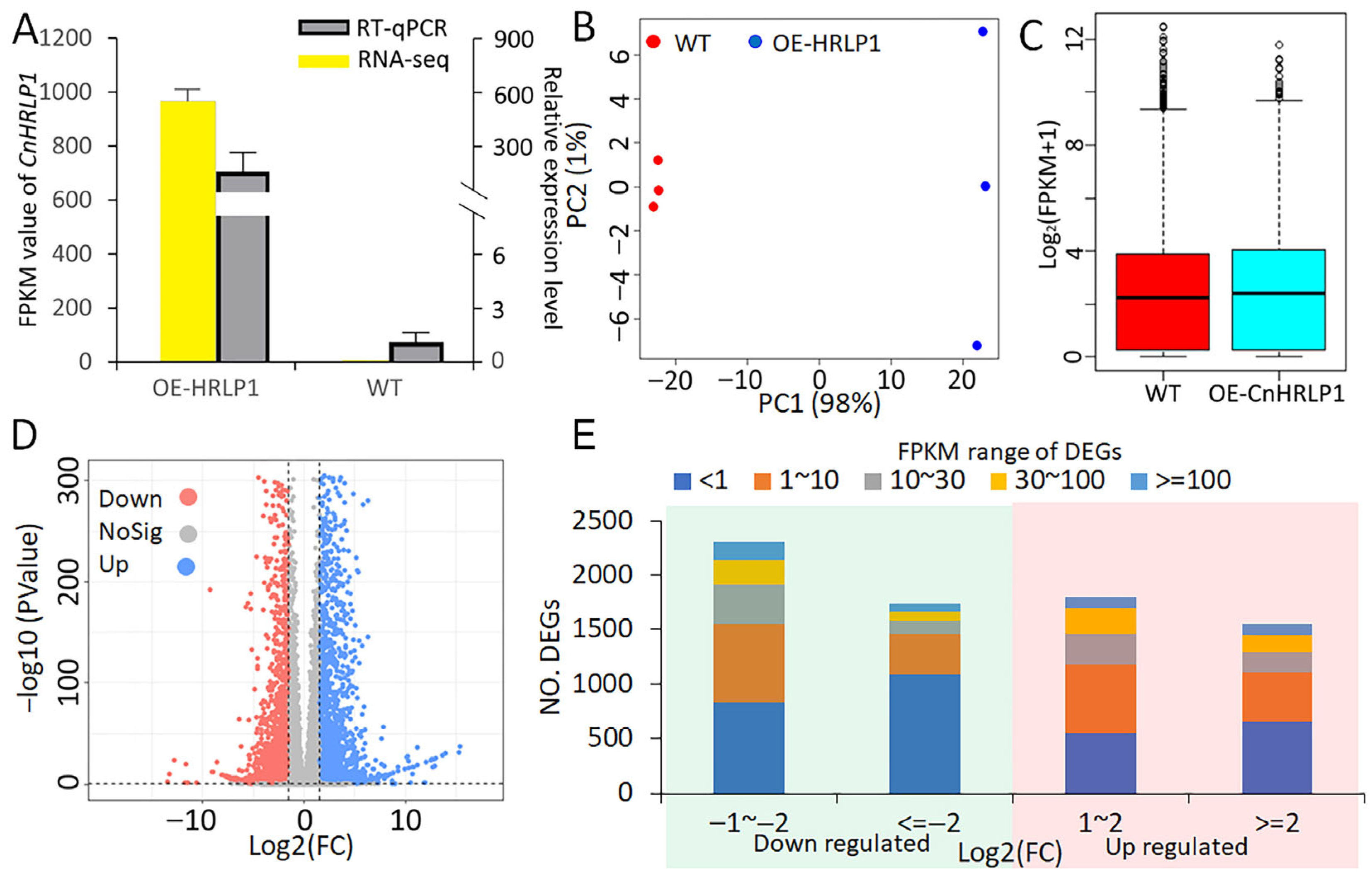 2.5. Transcriptomic Impact of CnHRLP1 Overexpression