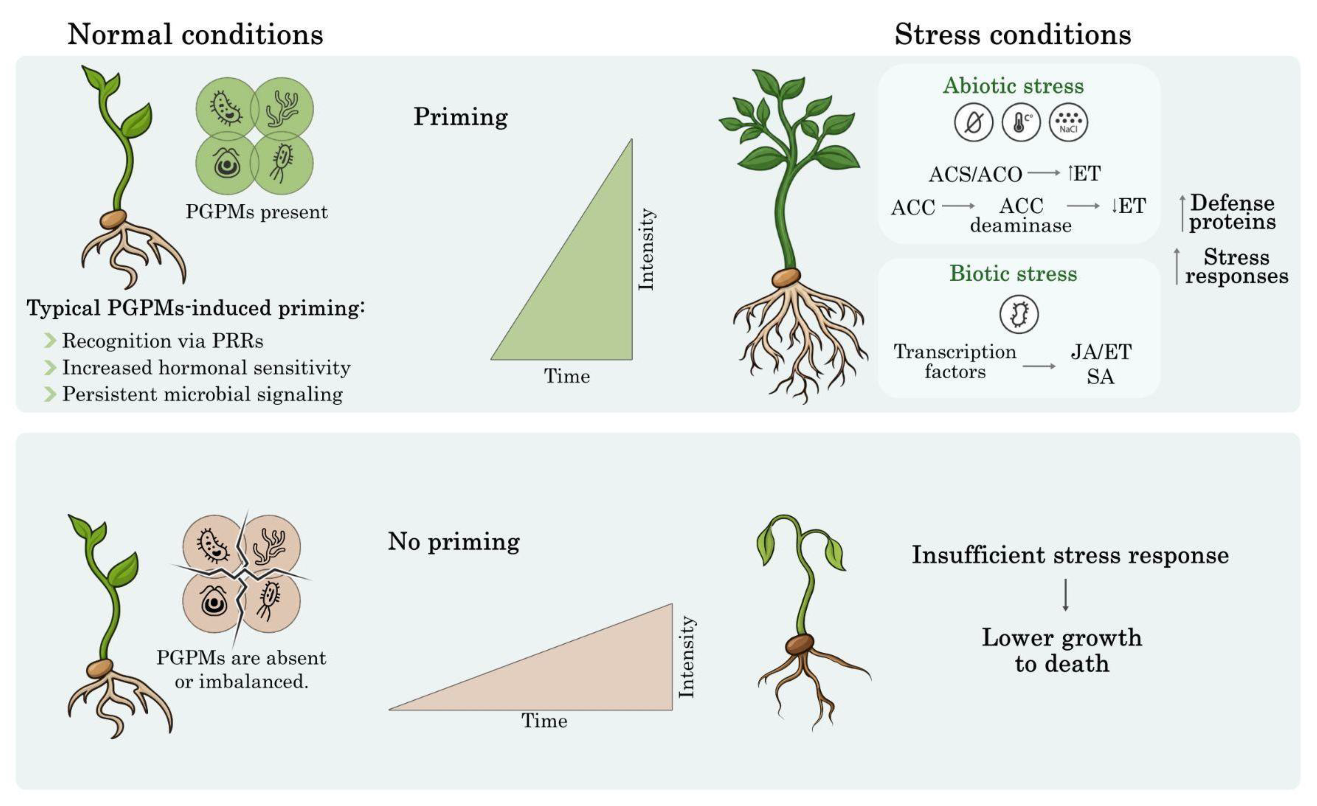 - Kaleh, A.M.; Singh, P.; Ooi Chua, K.; Harikrishna, J.A. Modulation of Plant Transcription Factors and Priming of Stress Tolerance by Plant Growth-Promoting Bacteria: A Systematic Review. Ann. Bot. 2025, 135, 387–402. [Google Scholar] [CrossRef]