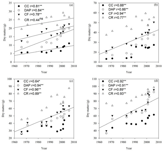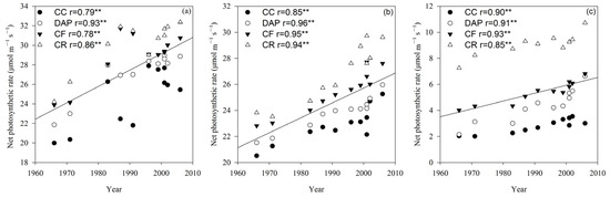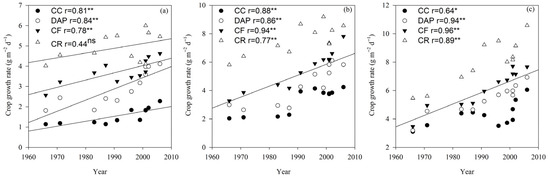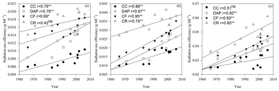 −1. In contrast, the dates of boll opening (Bol) and maturity (Mat) showed a delaying trend, with the delay rate ranging from 0.015 to 0.037 days year