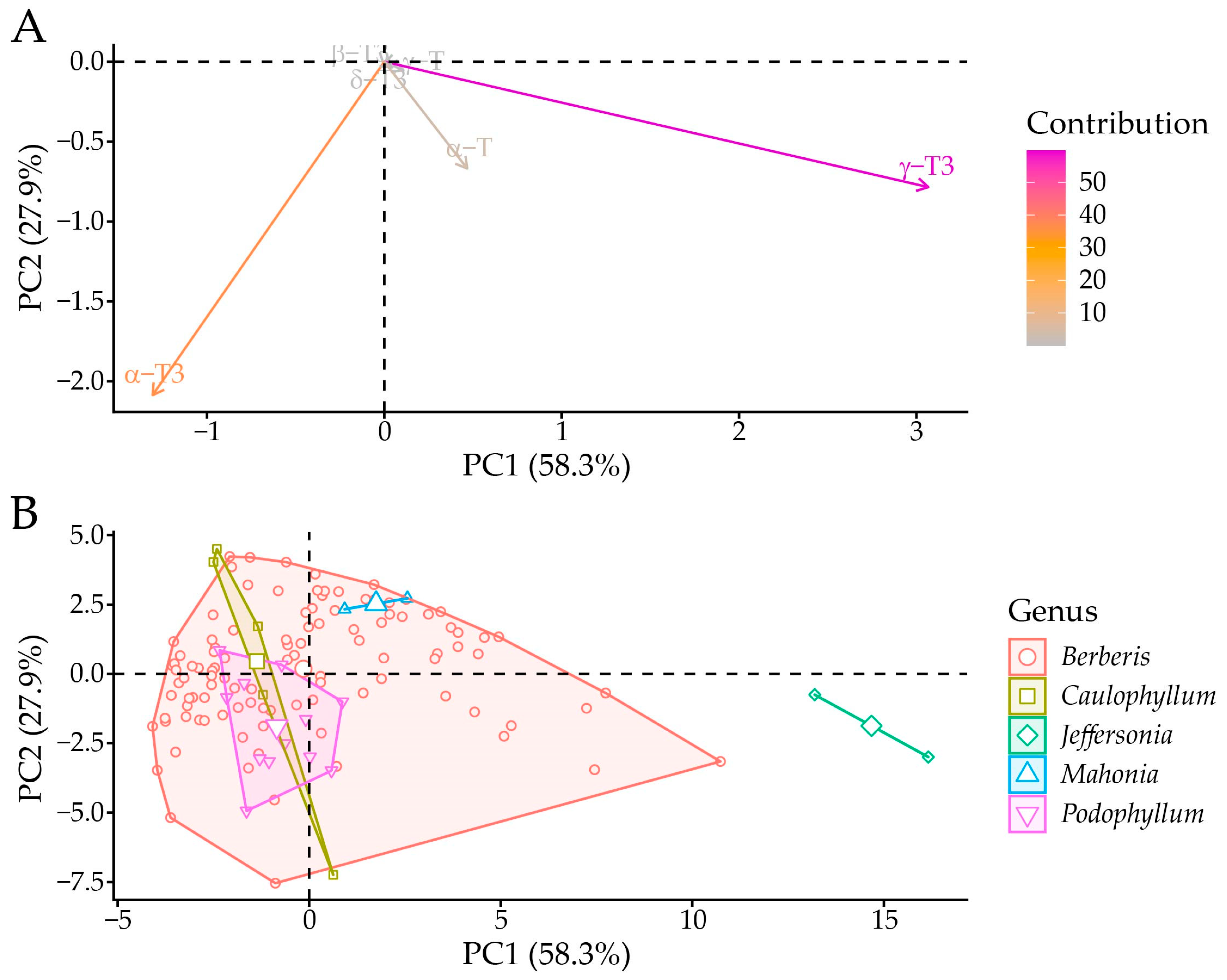 - Siger, A.; Górnaś, P. Free tocopherols and tocotrienols in 82 plant species’ oil: Chemotaxonomic relation as demonstrated by PCA and HCA. Food Res. Int. 2023, 164, 112386. [Google Scholar] [CrossRef]