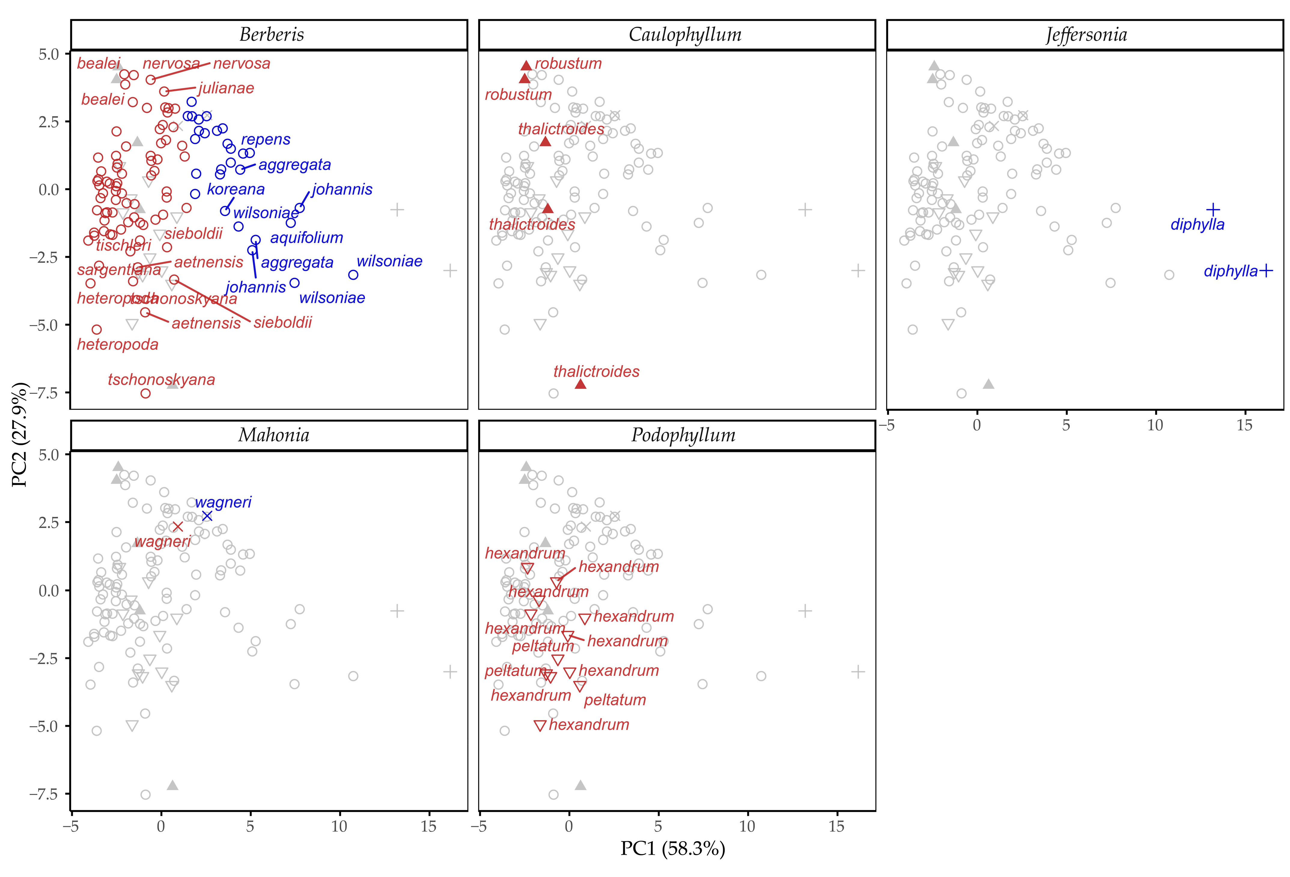 | Caulophyllum | robustum (n = 2) | 0.23 ± 0.11 | 1.26 ± 0.37 | ND | 0.25 ± 0.12 | 1.75 ± 0.36 | 0.2 | 6.0 |